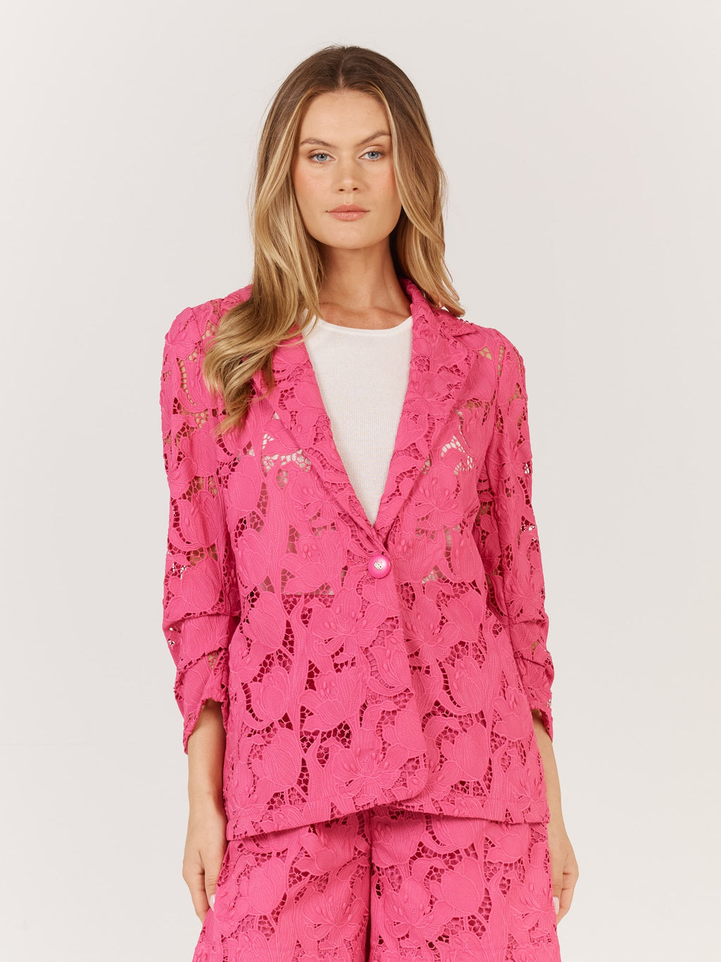 Elliatt Astraea Maxi Dress in Pink 3D Lace Floral