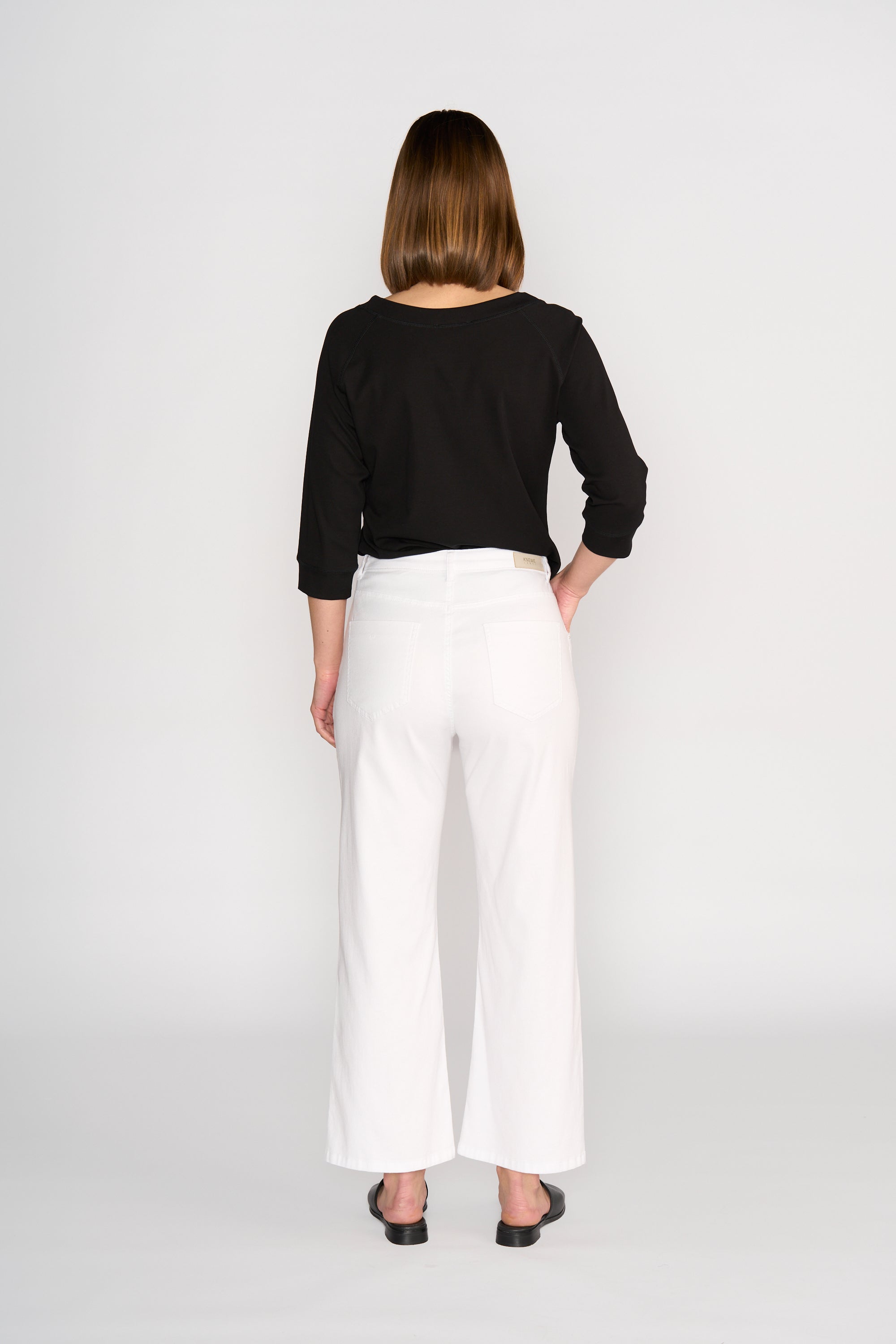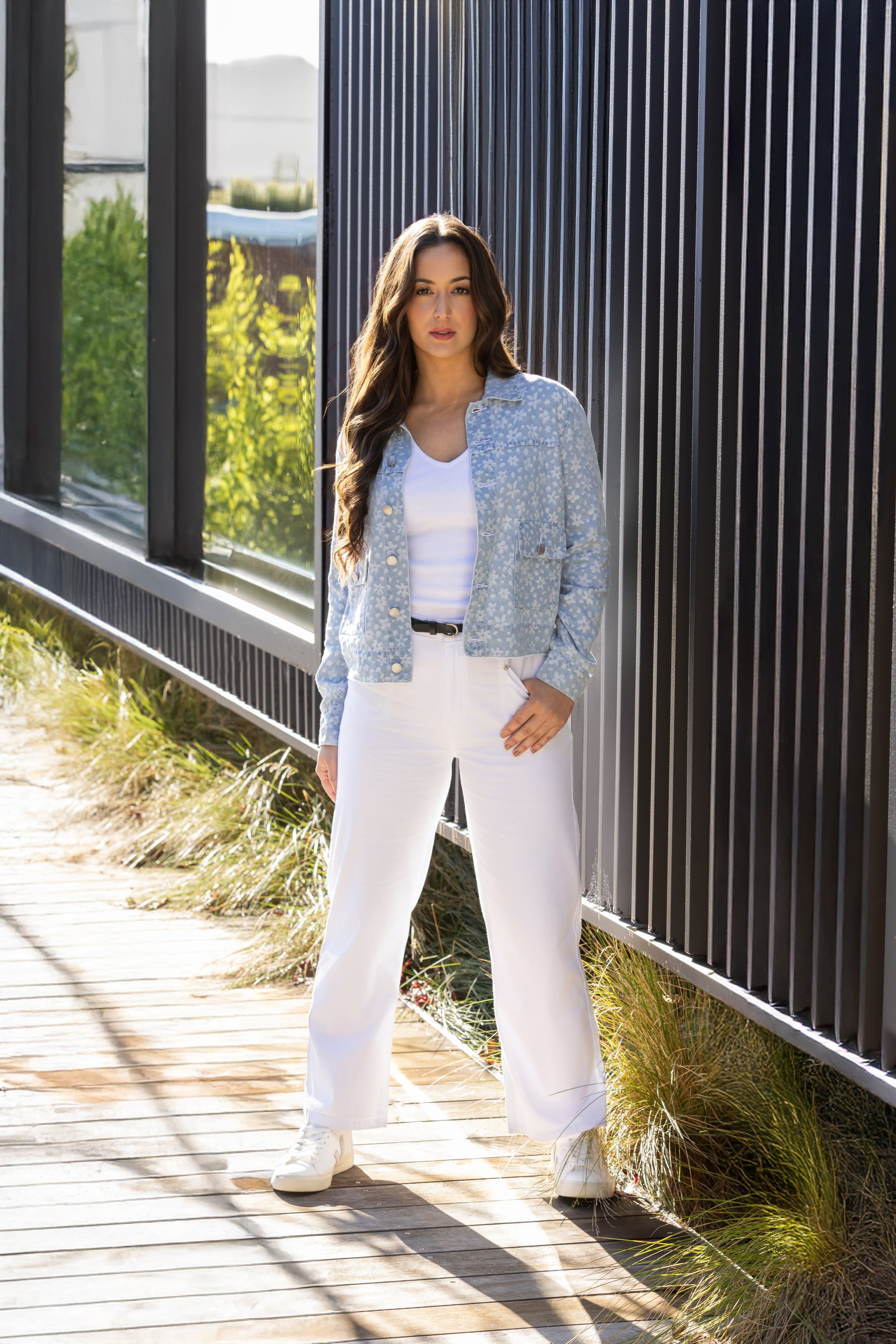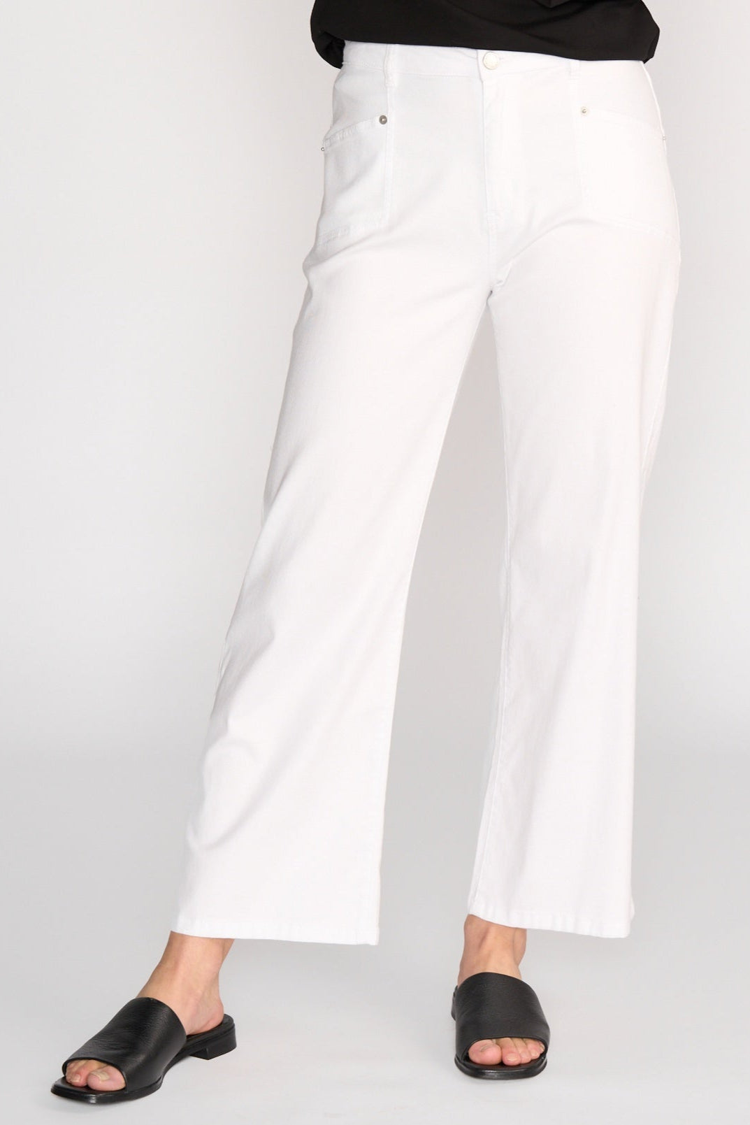 The Marlow Jean offers a flattering wide leg ankle grazer fit in lightweight stretch denim, blending casual comfort with a modern silhouette. Playful love heart embroidery on the back pocket adds a charming, playful touch to this easy-to-wear style.
