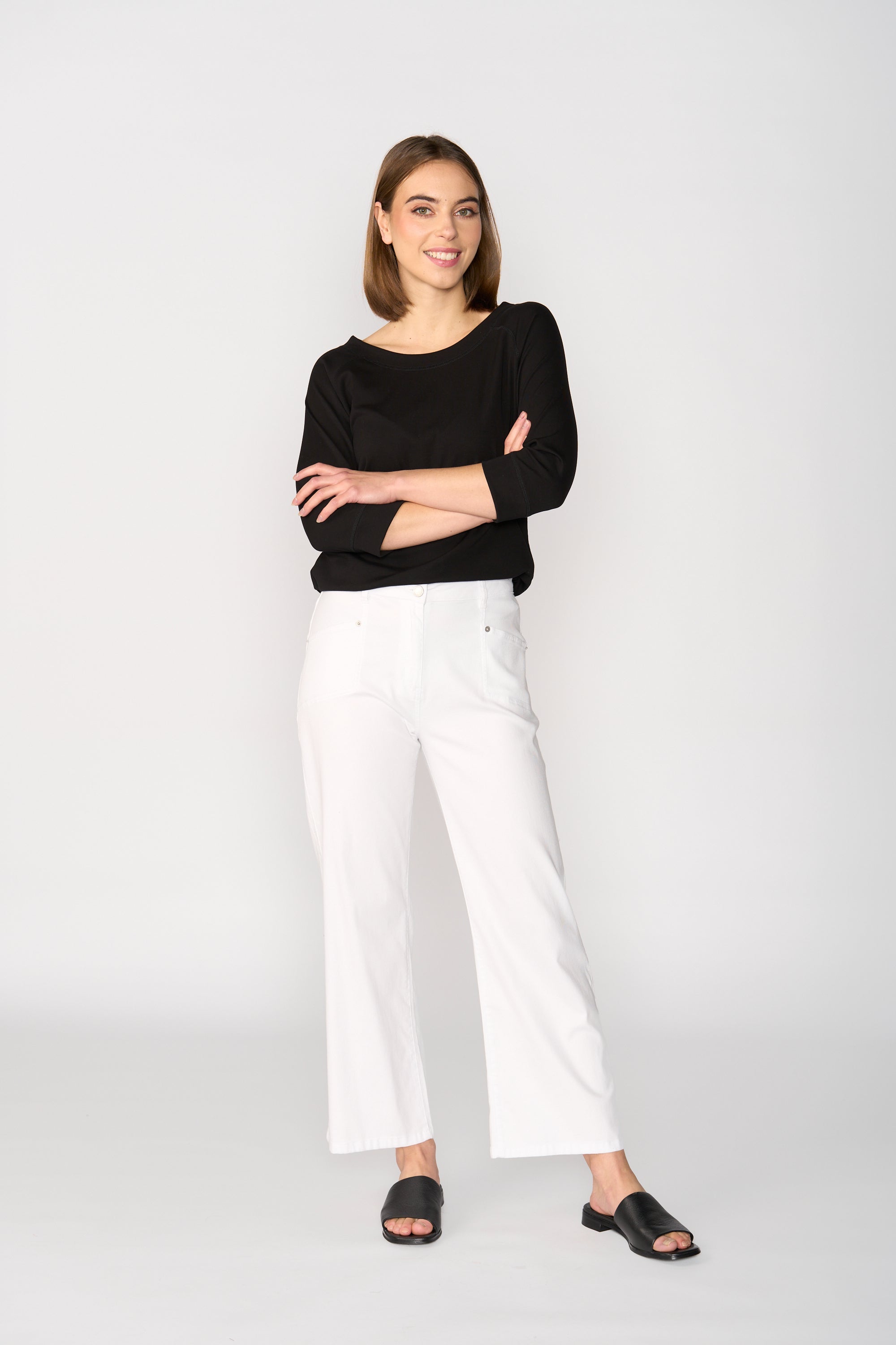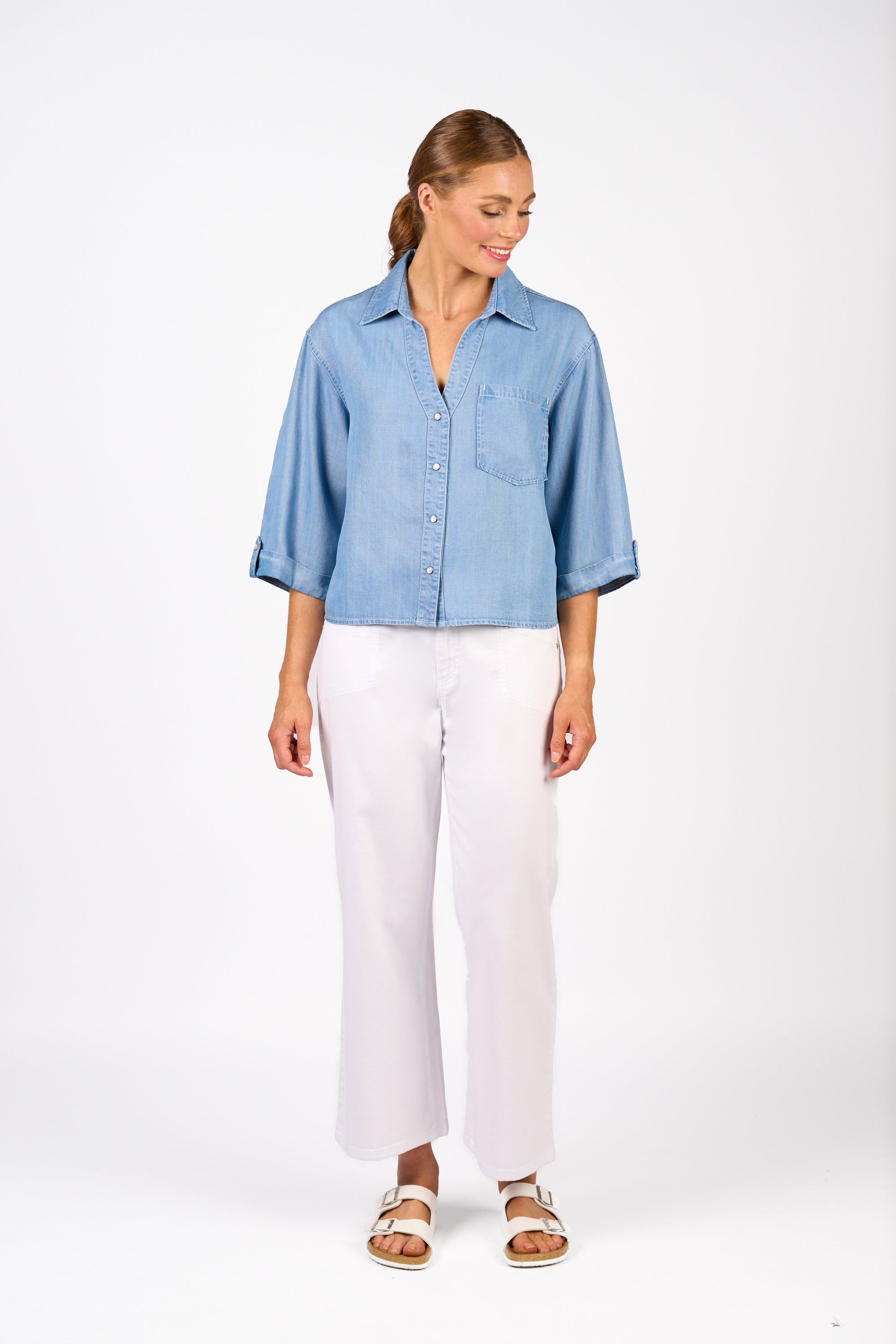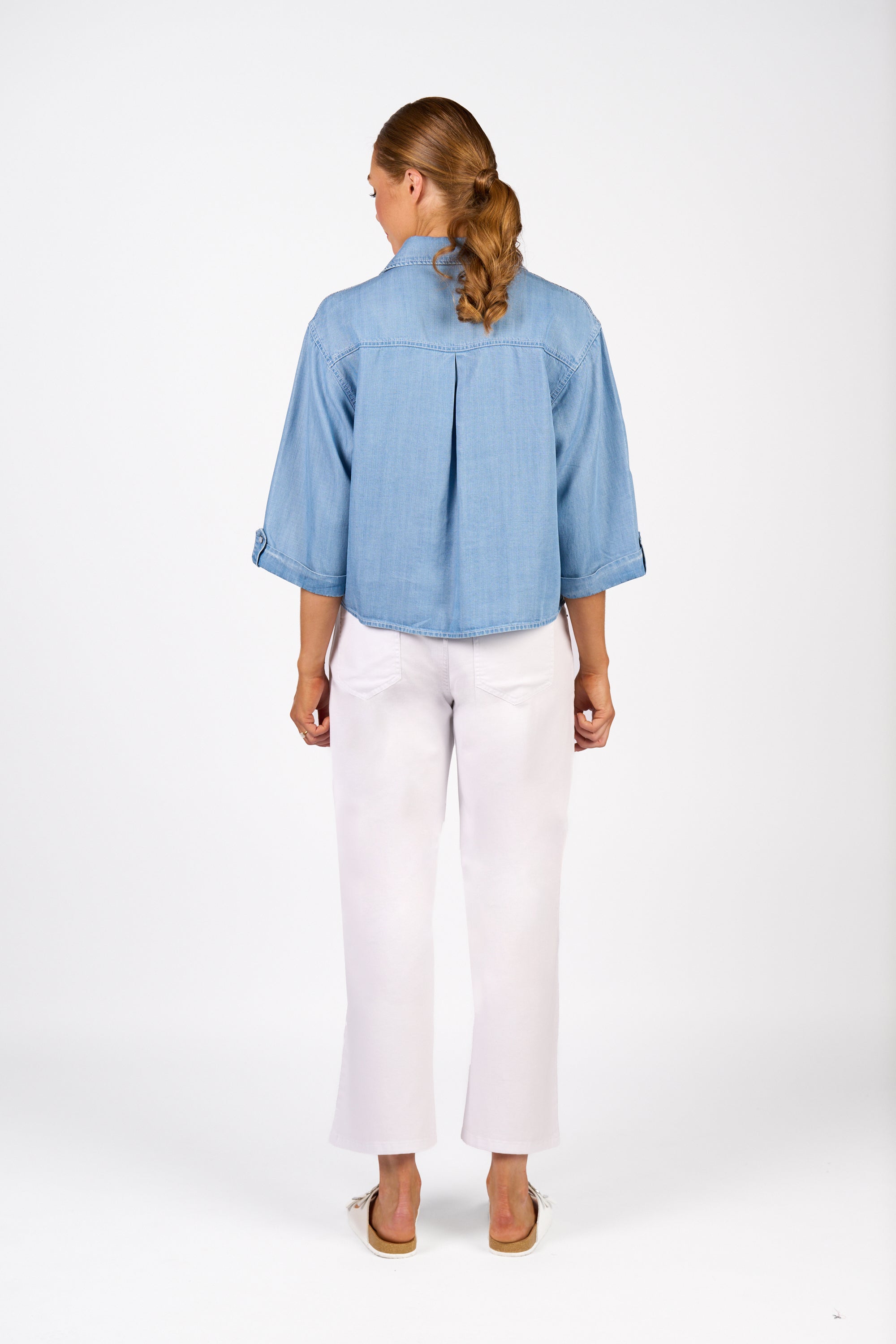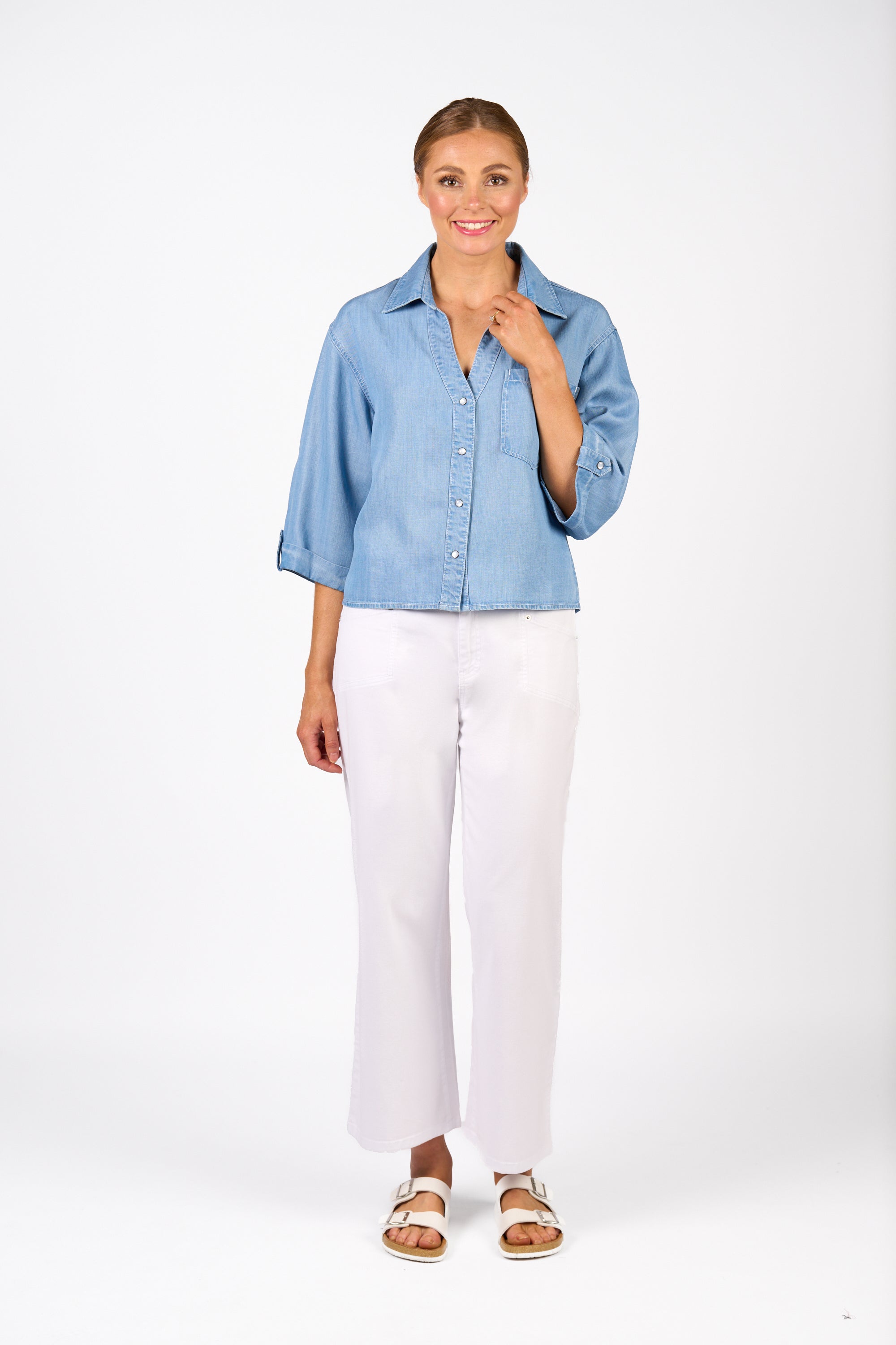 The Marlow Jean offers a flattering wide leg ankle grazer fit in lightweight stretch denim, blending casual comfort with a modern silhouette. Playful love heart embroidery on the back pocket adds a charming, playful touch to this easy-to-wear style.