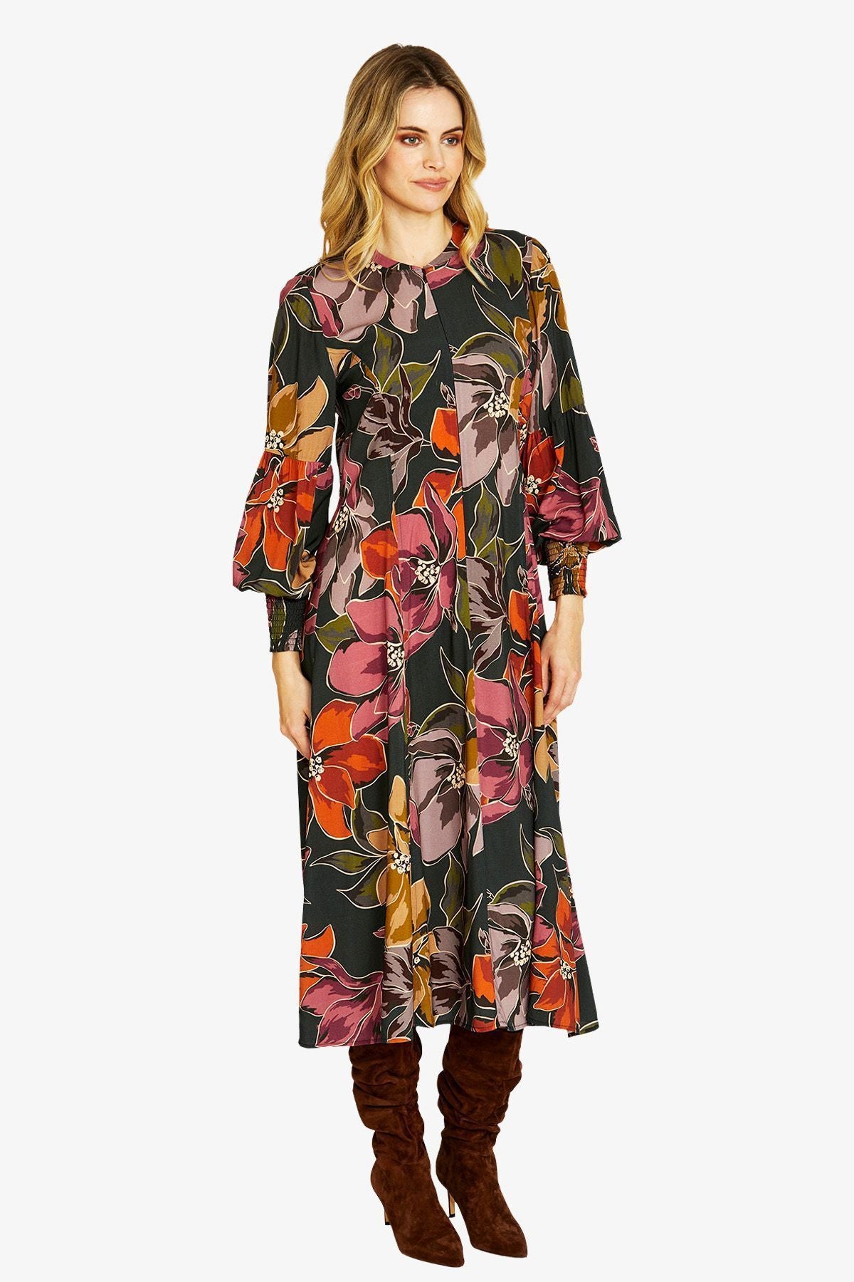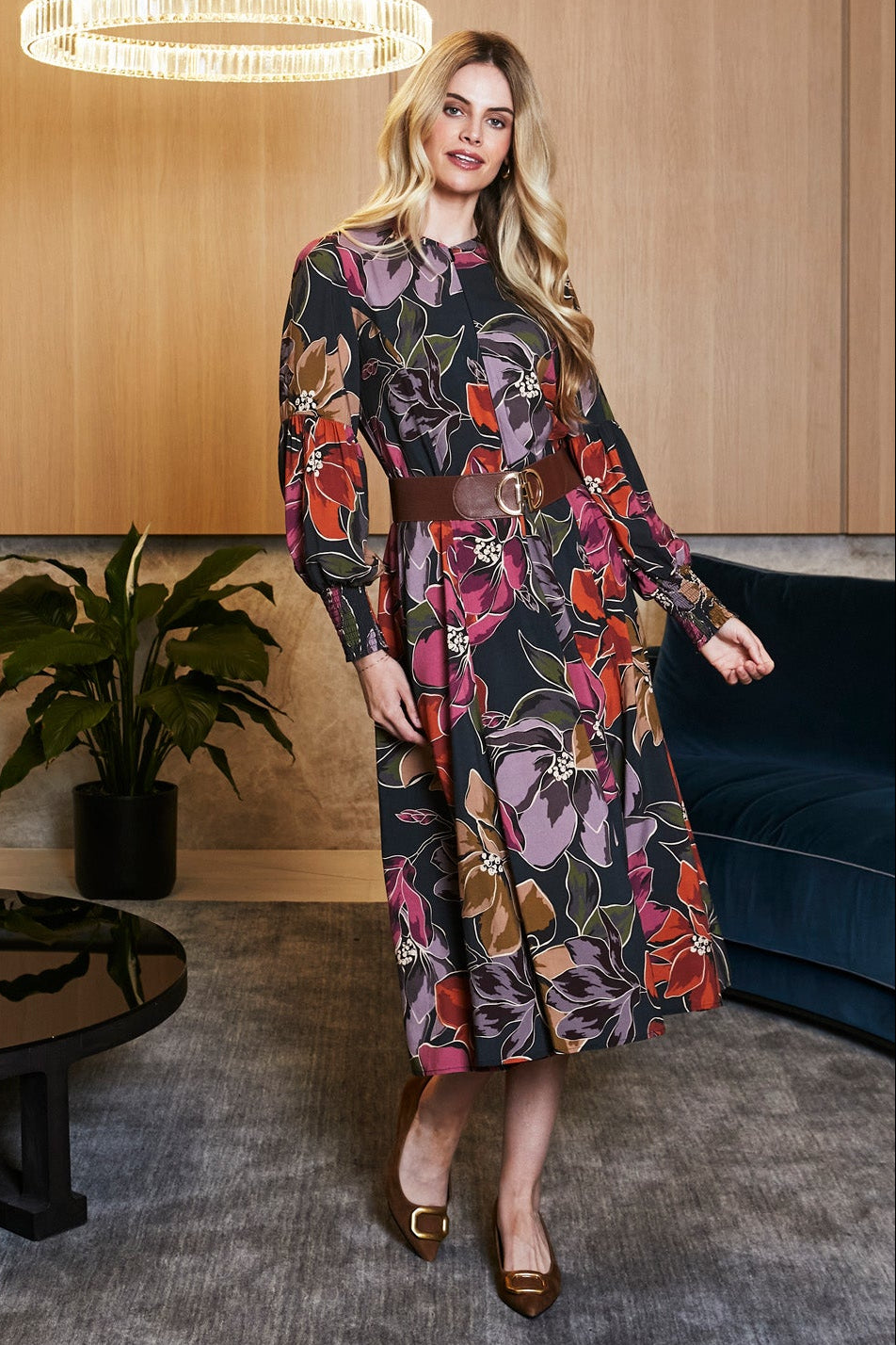 The Magnolia Print Dress captures feminine elegance with its soft floral tones and flowing silhouette. Designed to move beautifully with you, this long sleeve style is perfect for both daytime occasions and elevated evening moments.