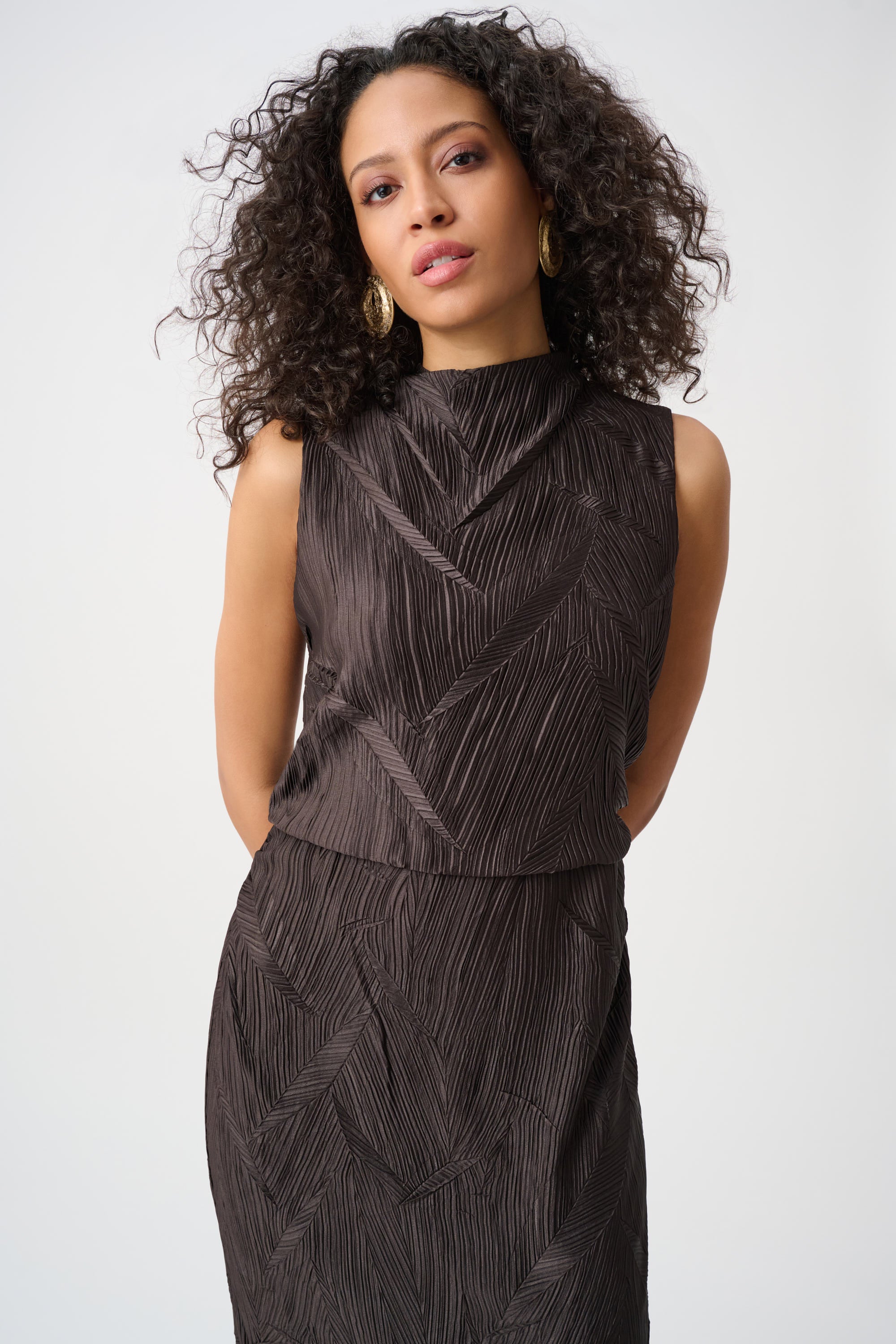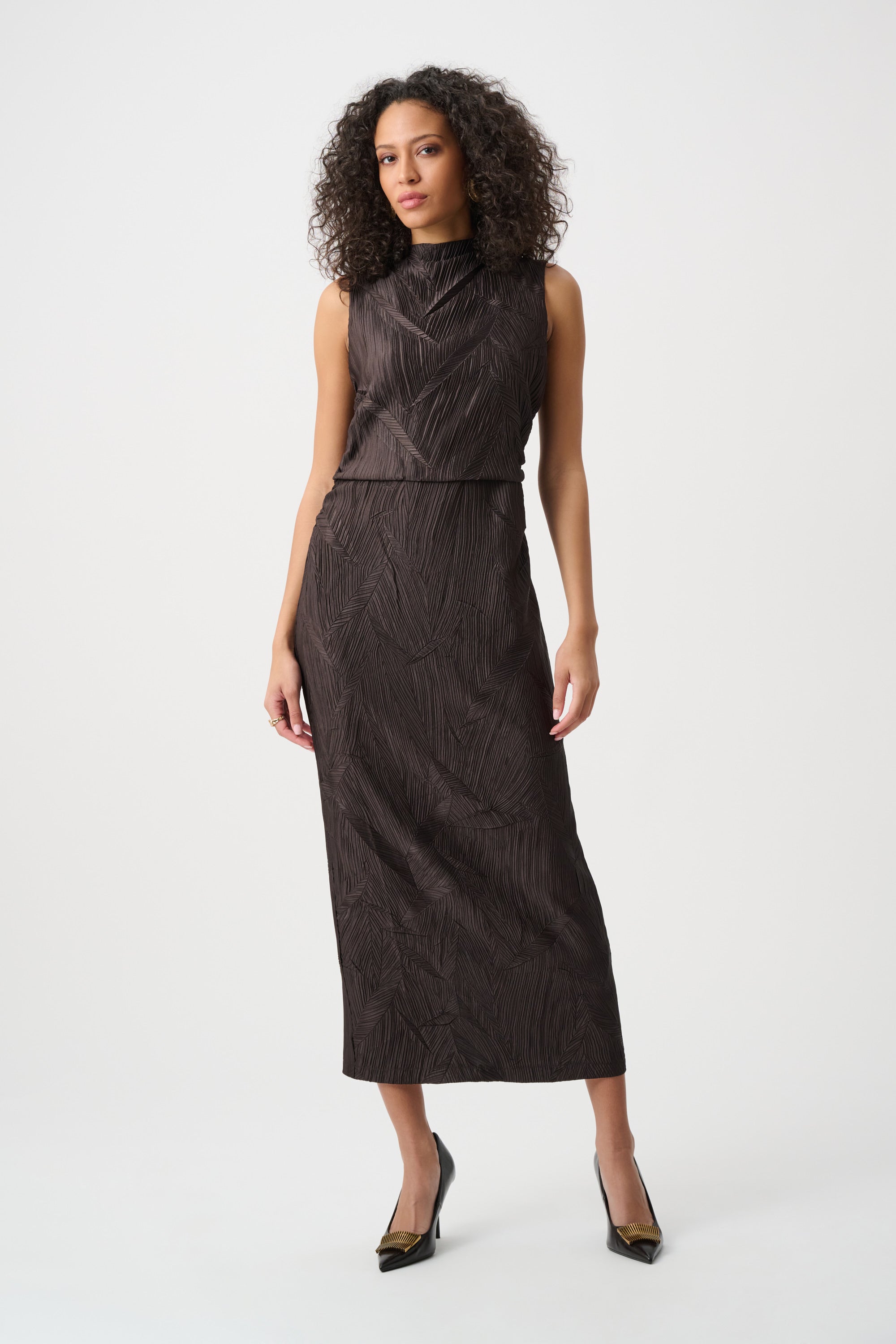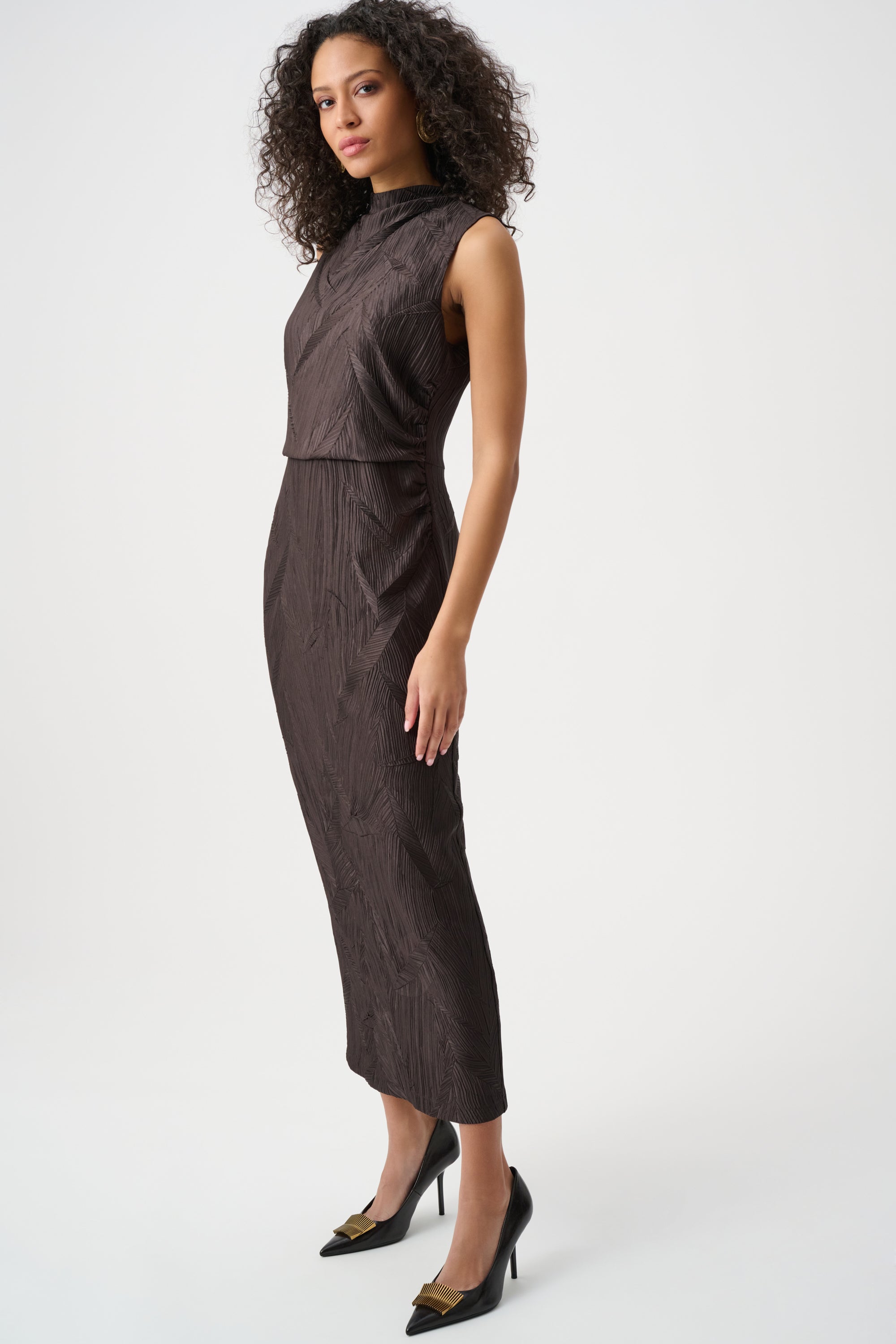 Joseph Ribkoff Crushed Pleated Dress in Mocha 263147