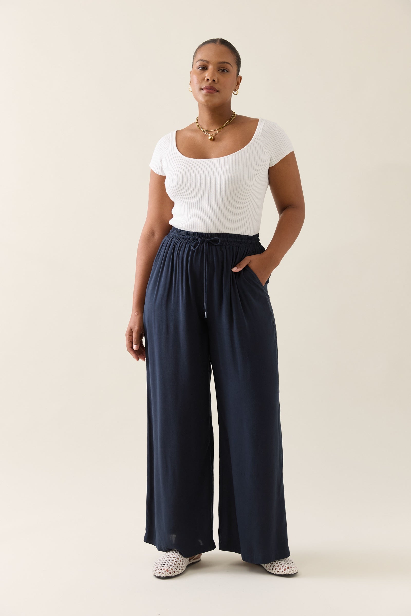An everyday essential, the Oline Pant is crafted from lightweight fabric with an elasticated waistband, drawstring tie and full-length relaxed fit. Side pockets keep it functional.