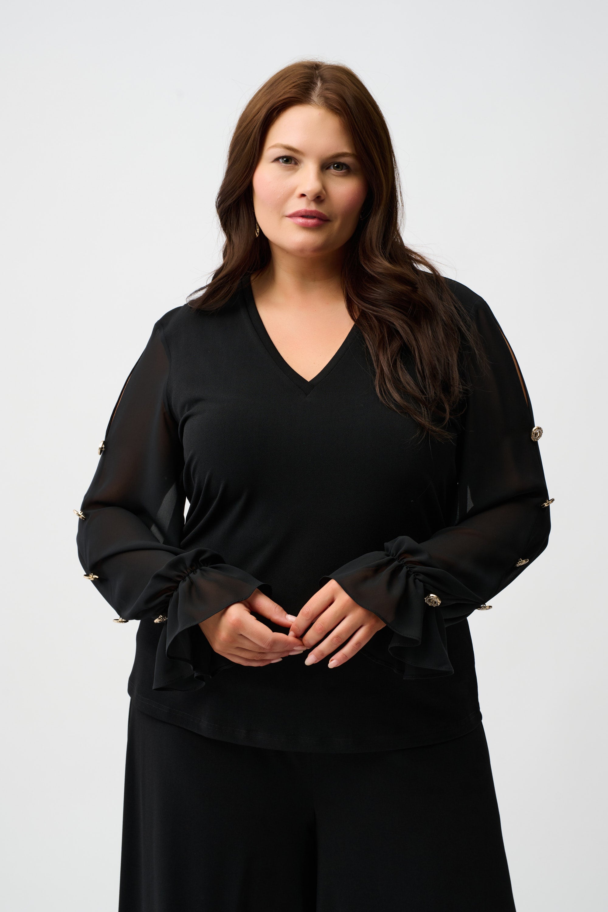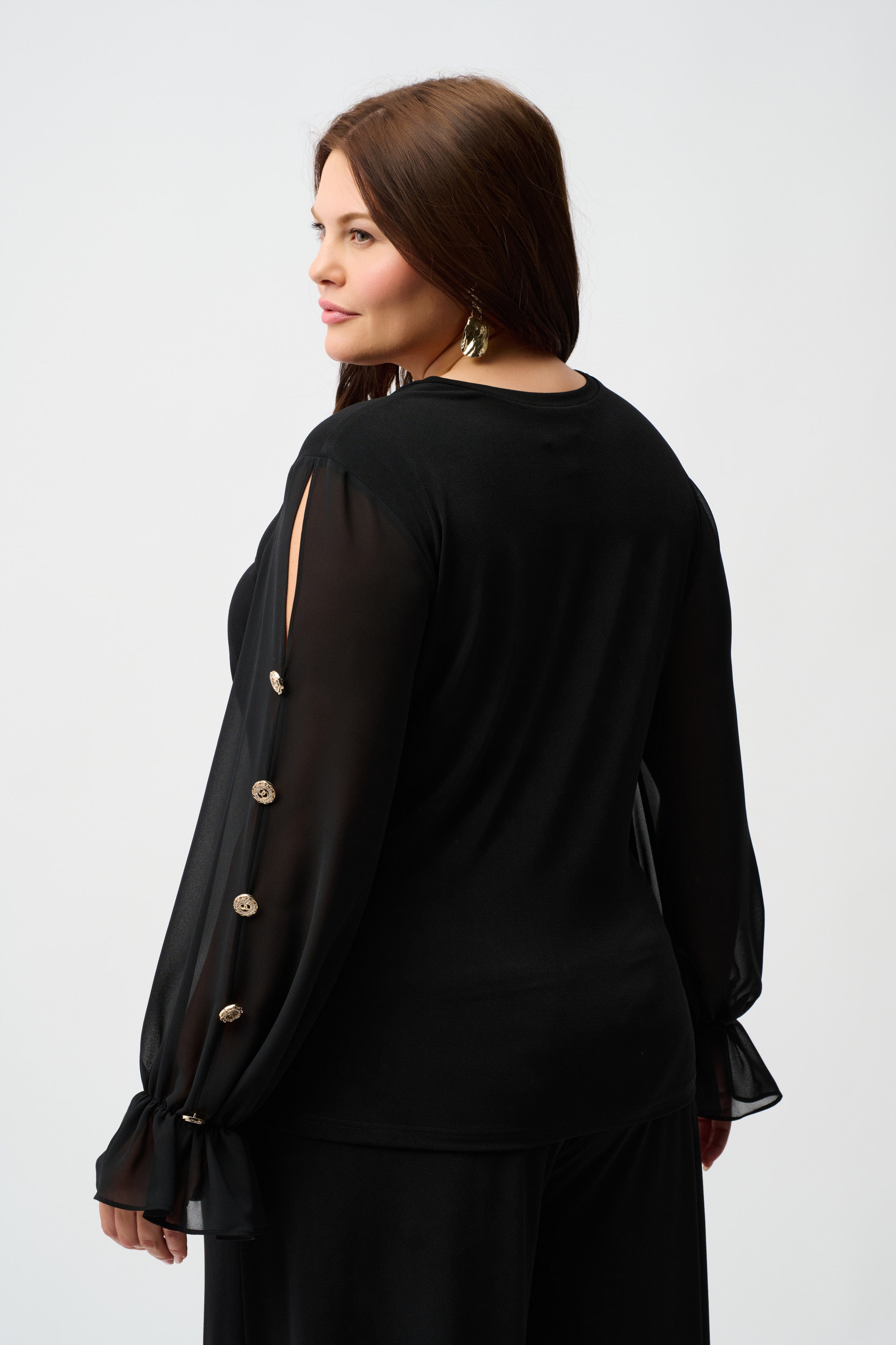 Joseph Ribkoff Moss Crepe & Chiffon Top in Black 254093