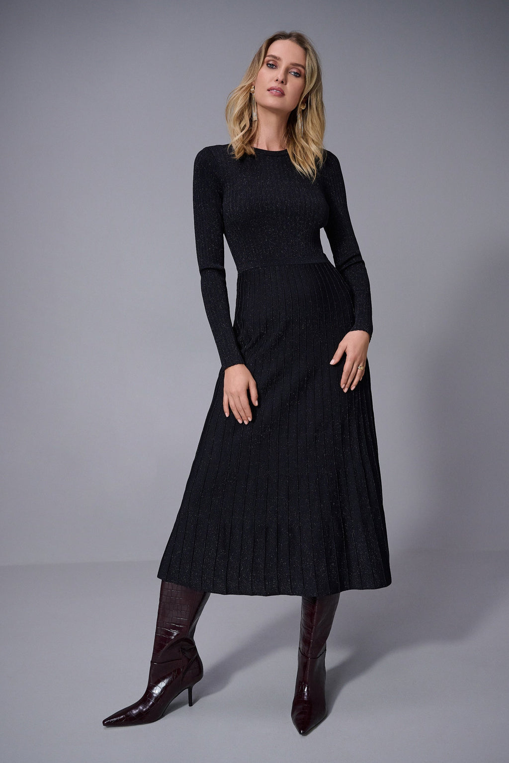 Joseph Ribkoff Fit & Flare Knit Dress in Black Glimmer 253987