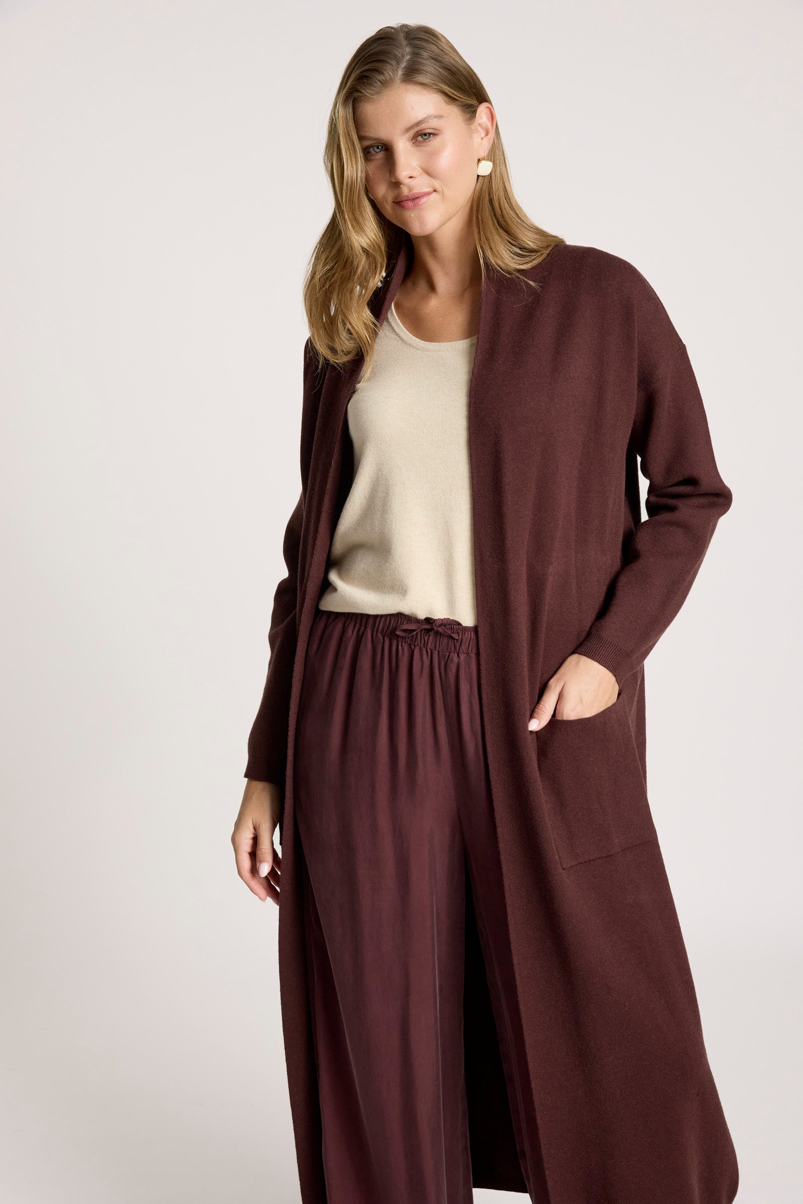 An easy winter layering piece designed for warmth and versatility. The Zala Cardigan features a longline silhouette with ribbed cuffs and hem, offering a clean, relaxed finish. A timeless essential for everyday wear.