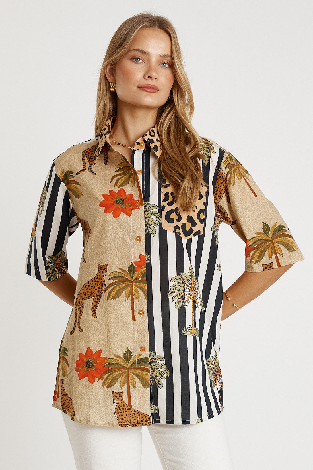Bringing colour and comfort together, the LulaLife Congo Shirt is an easy everyday piece with a playful twist. Made from 100% cotton, it feels light, breathable, and perfect for warm days. The relaxed fit, collared neckline, and button-through front keep the look clean and classic, while the elbow-length sleeves and curved hem add to its casual, laid-back feel. Finished with mix-and-match prints and proudly designed in Australia, this shirt pairs effortlessly with denim, shorts, or the matching Congo Short for a fresh, fun outfit.