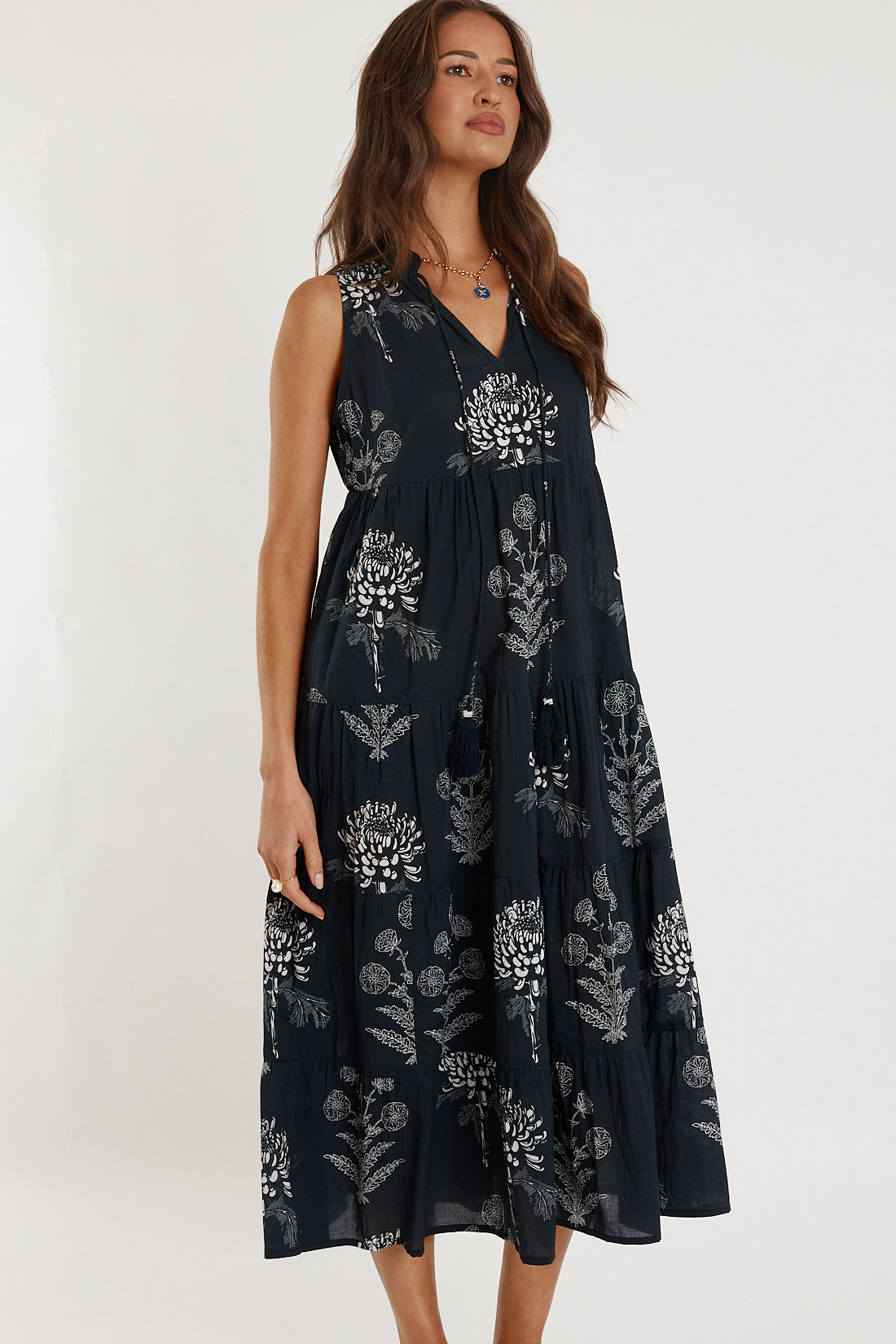 Elevate your wardrobe with the Rubyyaya Waratah Maxi, a modern take on effortless elegance. Crafted from 100% cotton with a delicate display of waratah flowers, this dress brings coolness to your everyday look. The V neck bodice and sleeveless cut adds a touch of sophistication, while the relaxed tiered fit and side pockets ensure comfort without compromising style. Designed in Australia, this dress blends contemporary fashion with timeless details.