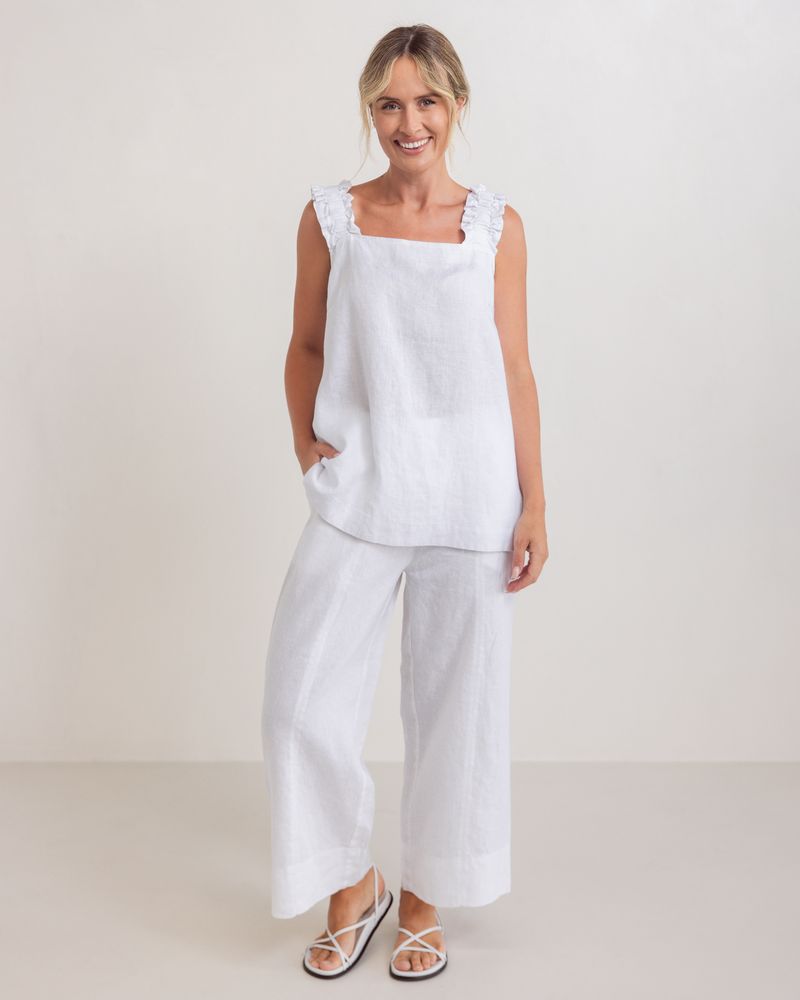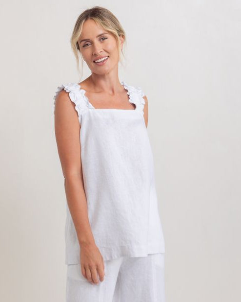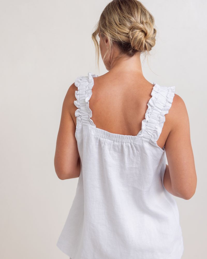 Linen shift top with gathered elasticated thick straps