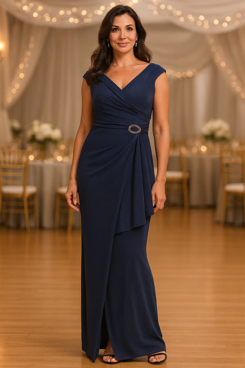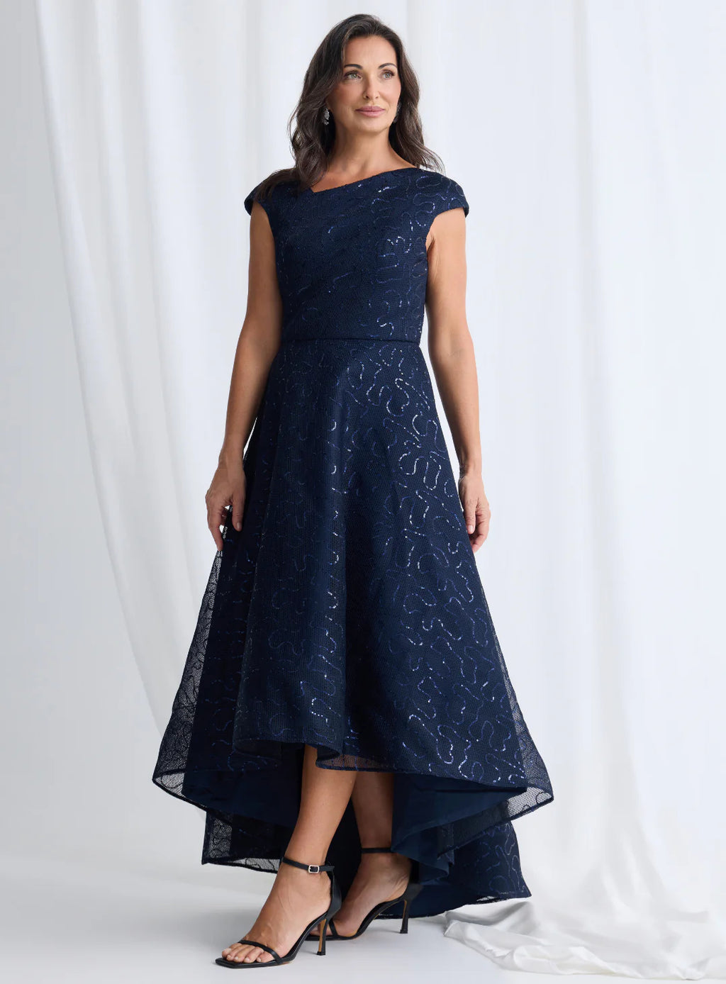 Trellis Lane Cora Asymmetrical Gown in Navy