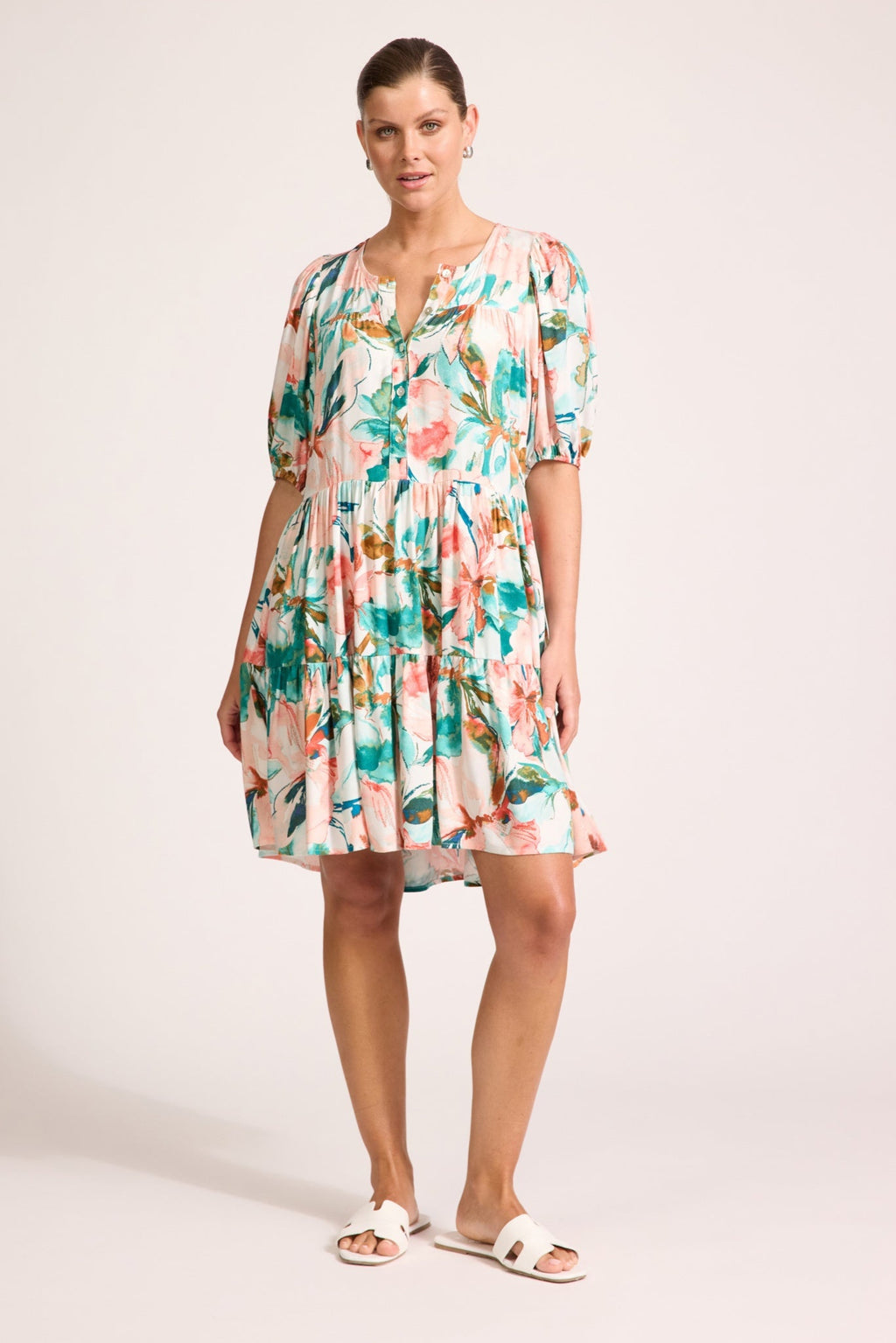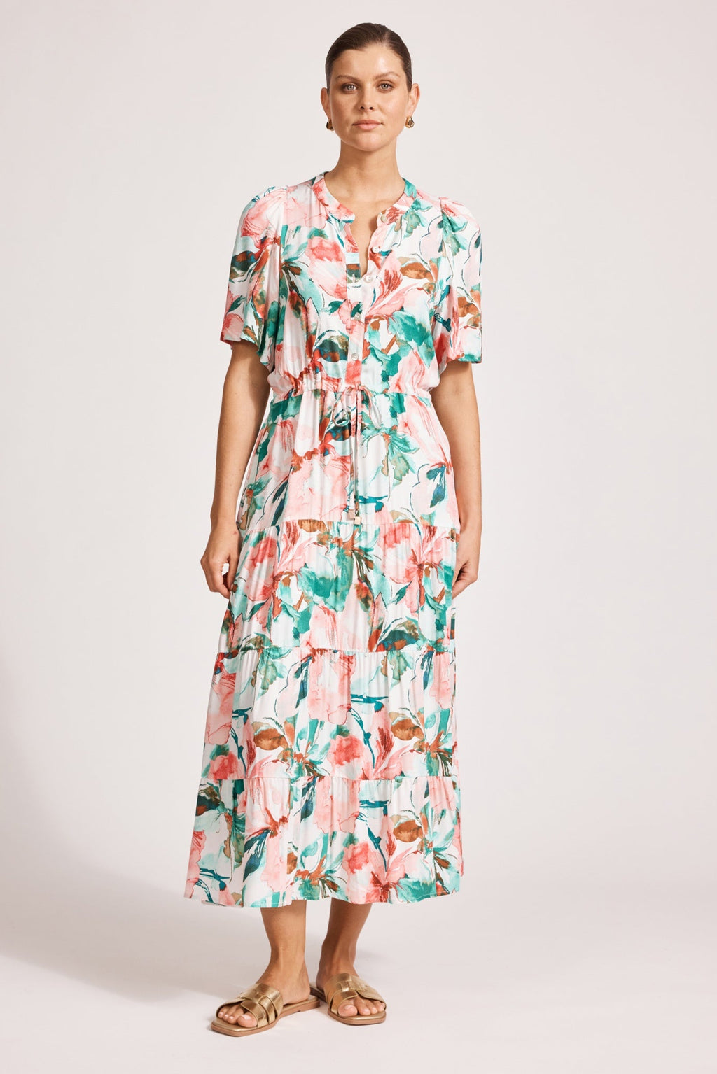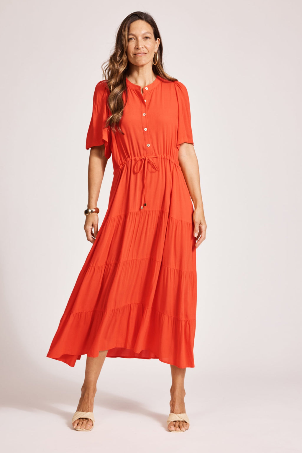 Eb & Ive Alegria Tiered Maxi Dress in Coral