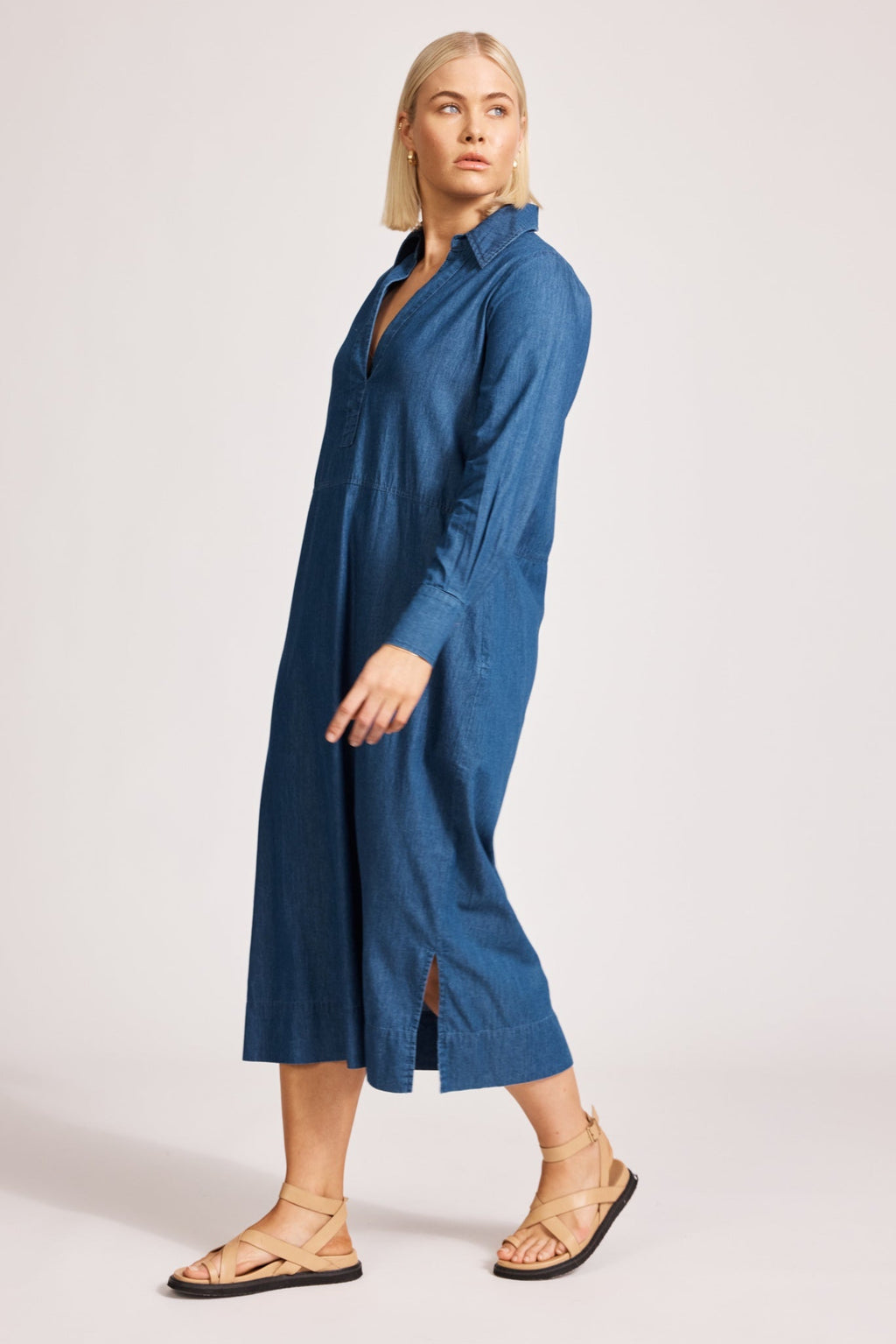 Eb & Ive Melenia Denim Collared Dress in Indigo