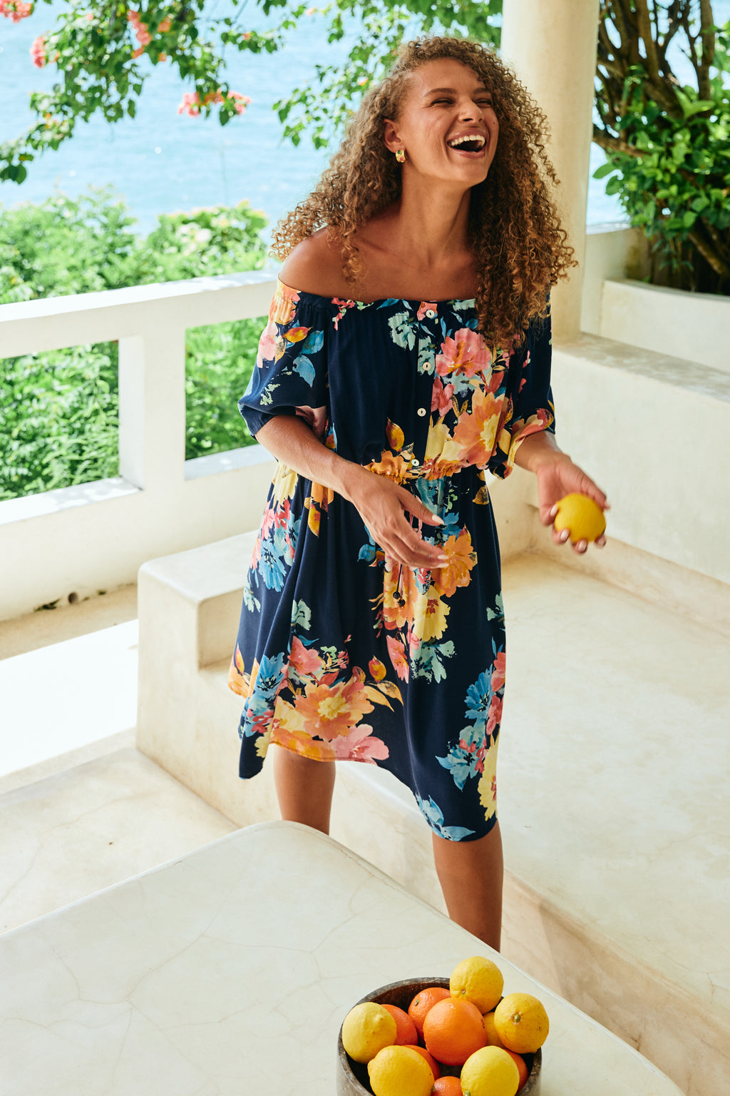 Eb & Ive Parisio Button Dress in Indigo Bloom