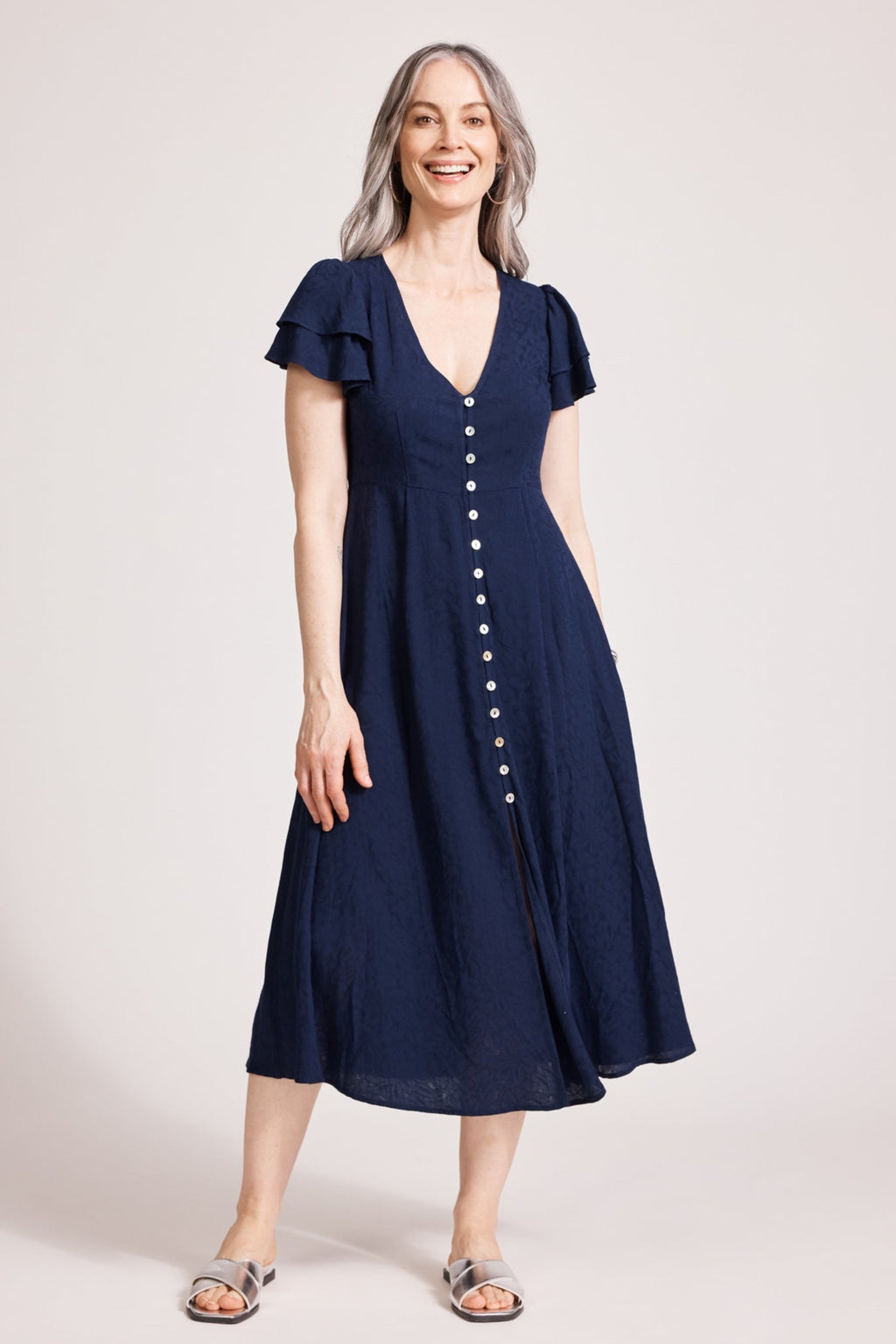 Eb & Ive Parisio Button Midi Dress in Indigo Bloom
