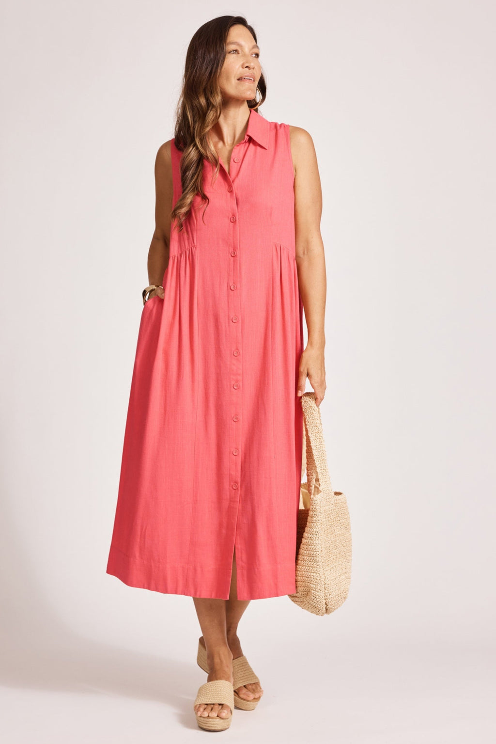 Eb & Ive Alesia Sleeveless Shirt Dress in Melon