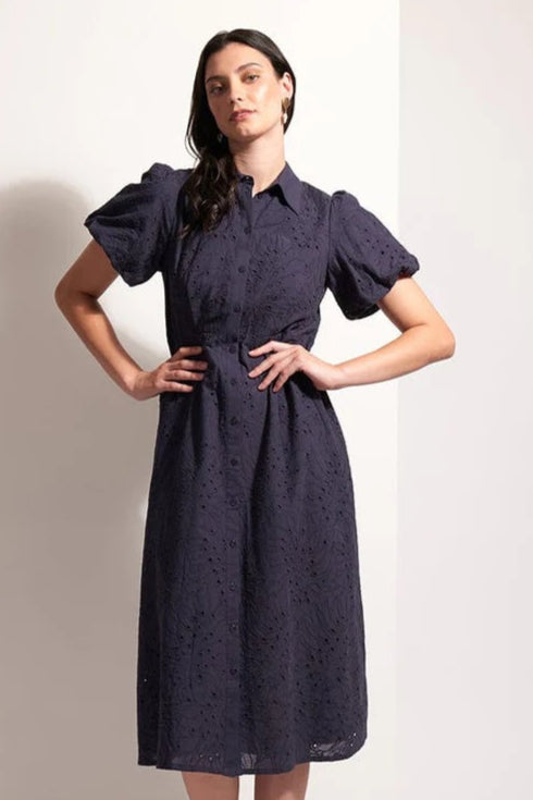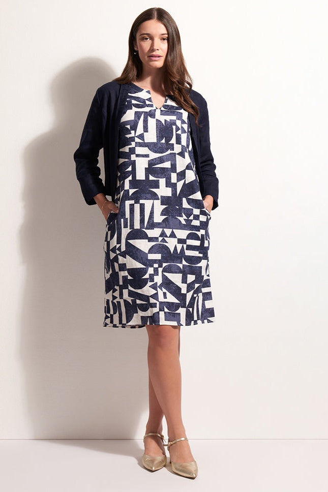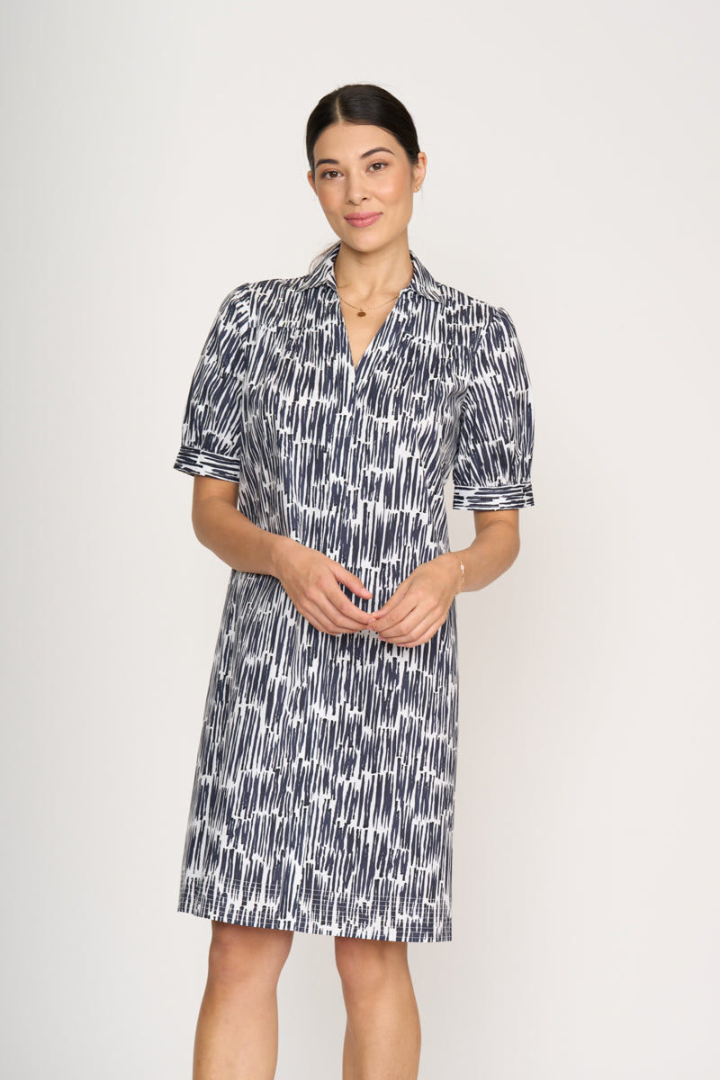 Foil Cut Above Dress in Palm True Navy