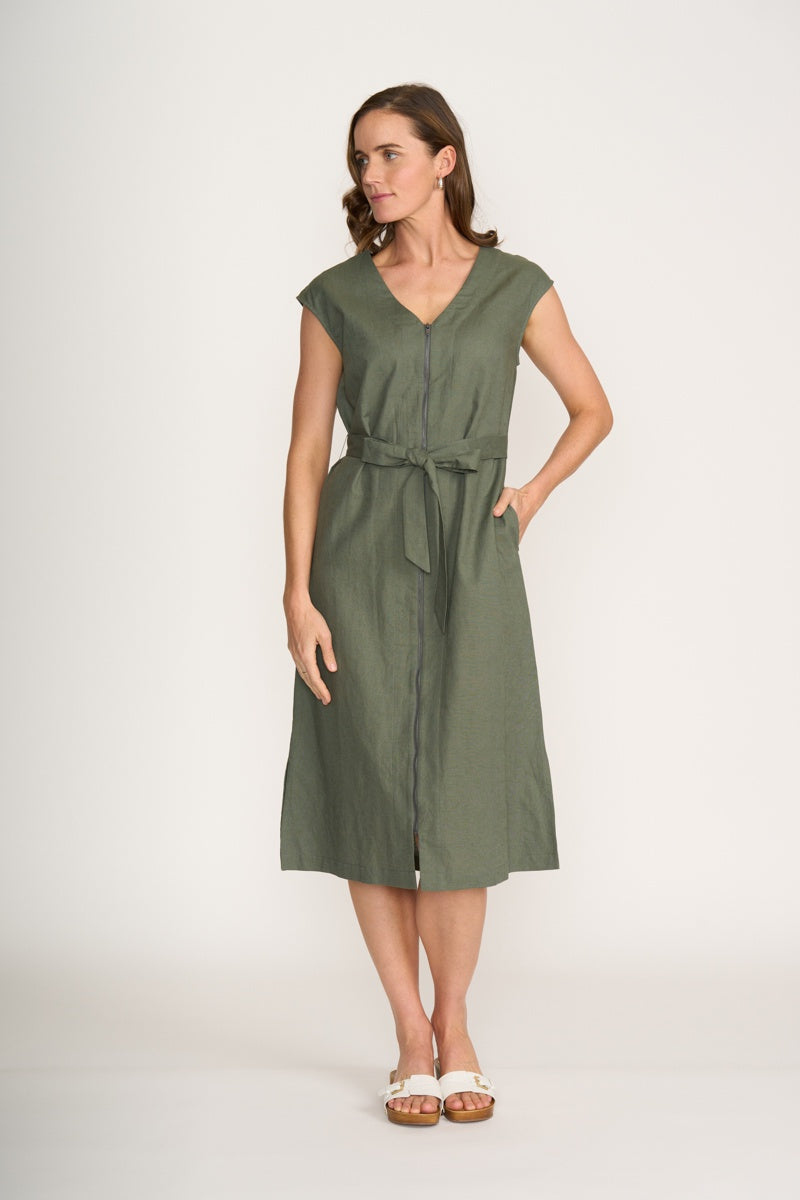 Foil You Little Zipper Dress in Sage