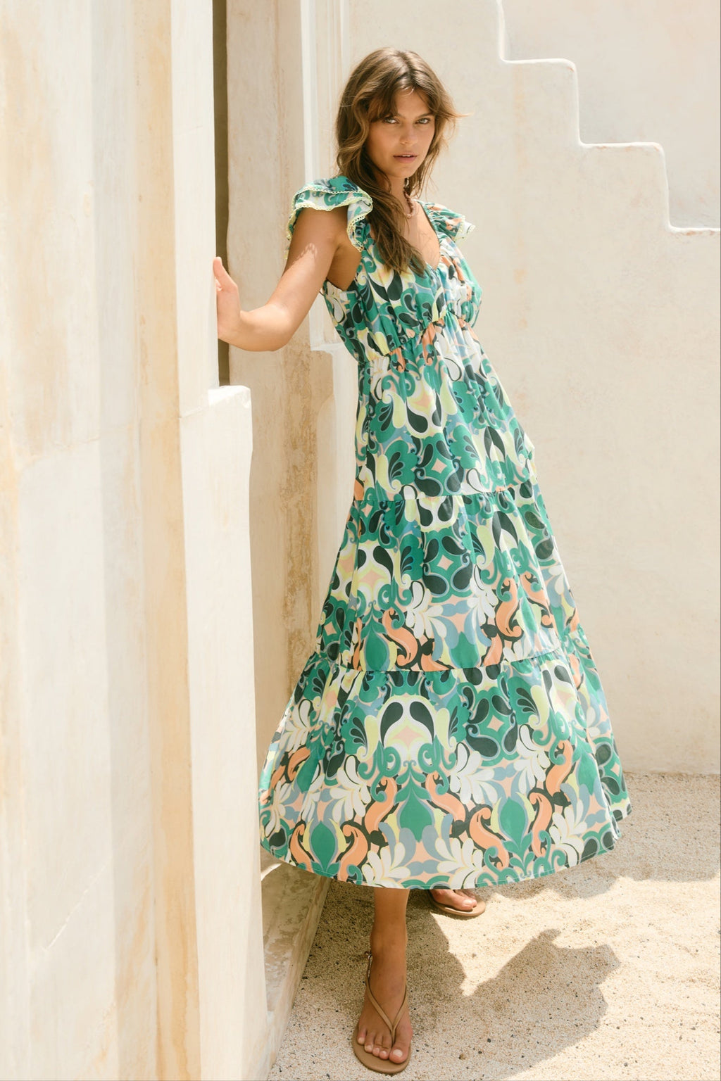 Isle of Mine Esther Shirred Maxi in Myrtle