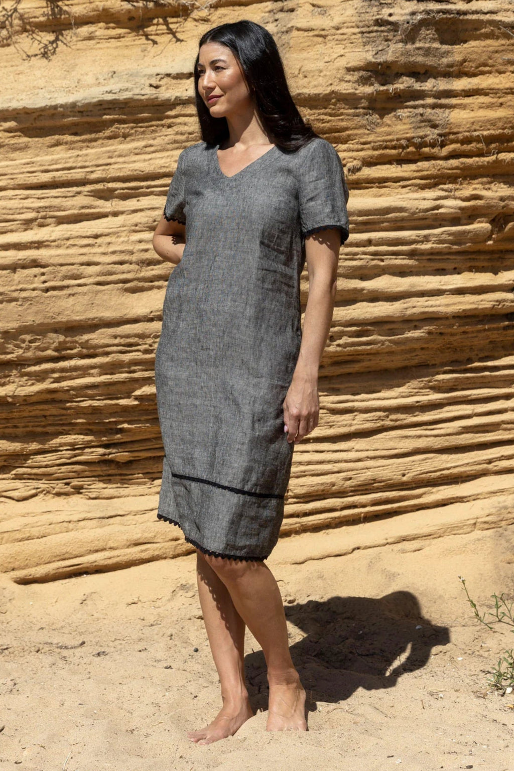 Joseph Ribkoff Shirred Metallic Dress in Gunmetal 234158