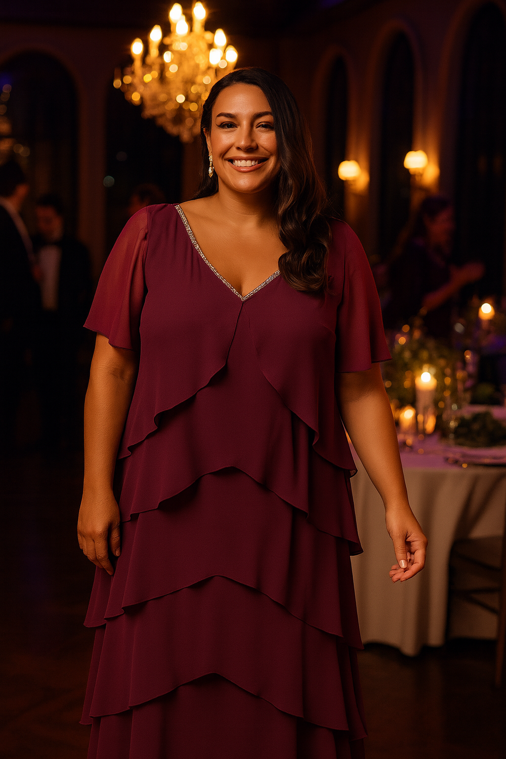 Layla Jones Layered Midi Dress in Mulberry LJ0627