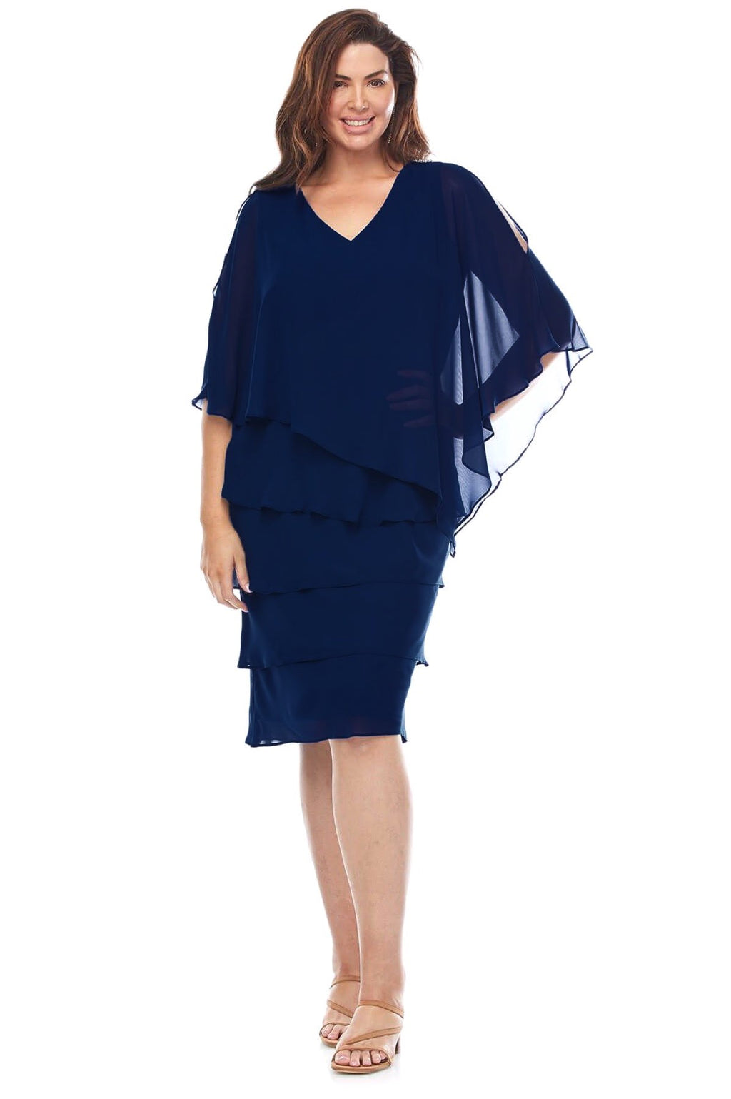 Layla Jones Chiffon Cape Dress in Midnight LJ0448