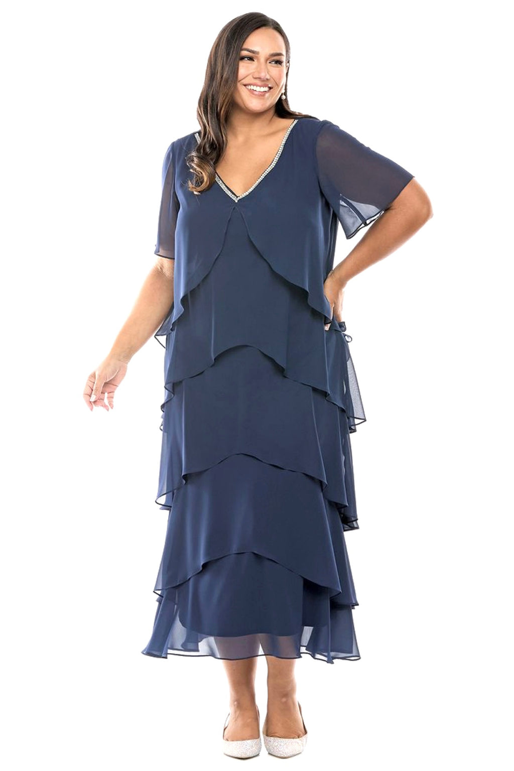 Layla Jones Chiffon Layered Dress in Midnight LJ0003