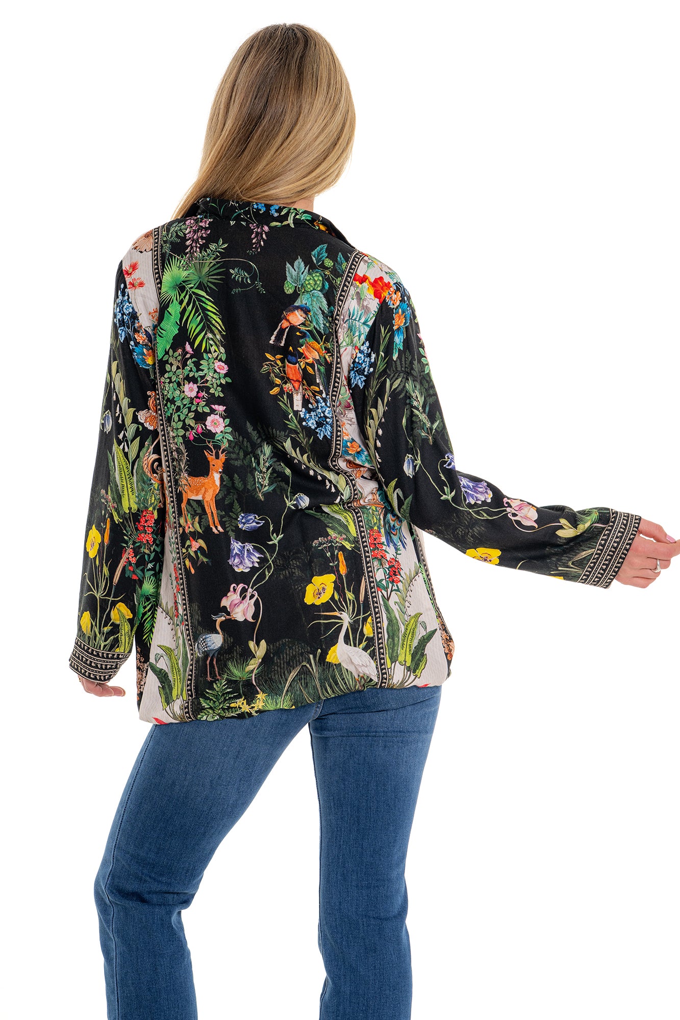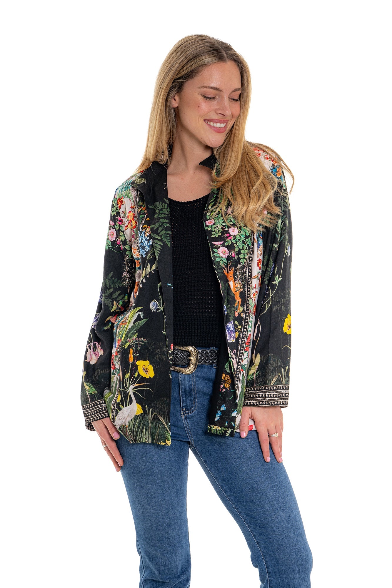 This gorgeous, relaxed floral pattern jacket can be worn casually with jeans or dressed up with dress pants.