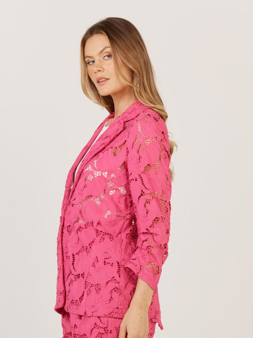 The Worth It Blazer is a true statement piece in open embroidery lace. Featuring a vented back hem, ruched sleeves, and a signature button, it’s an elevated twist on a classic silhouette. Fully lined for comfort and structure. Perfect for adding a polished, sophisticated touch to any outfit.