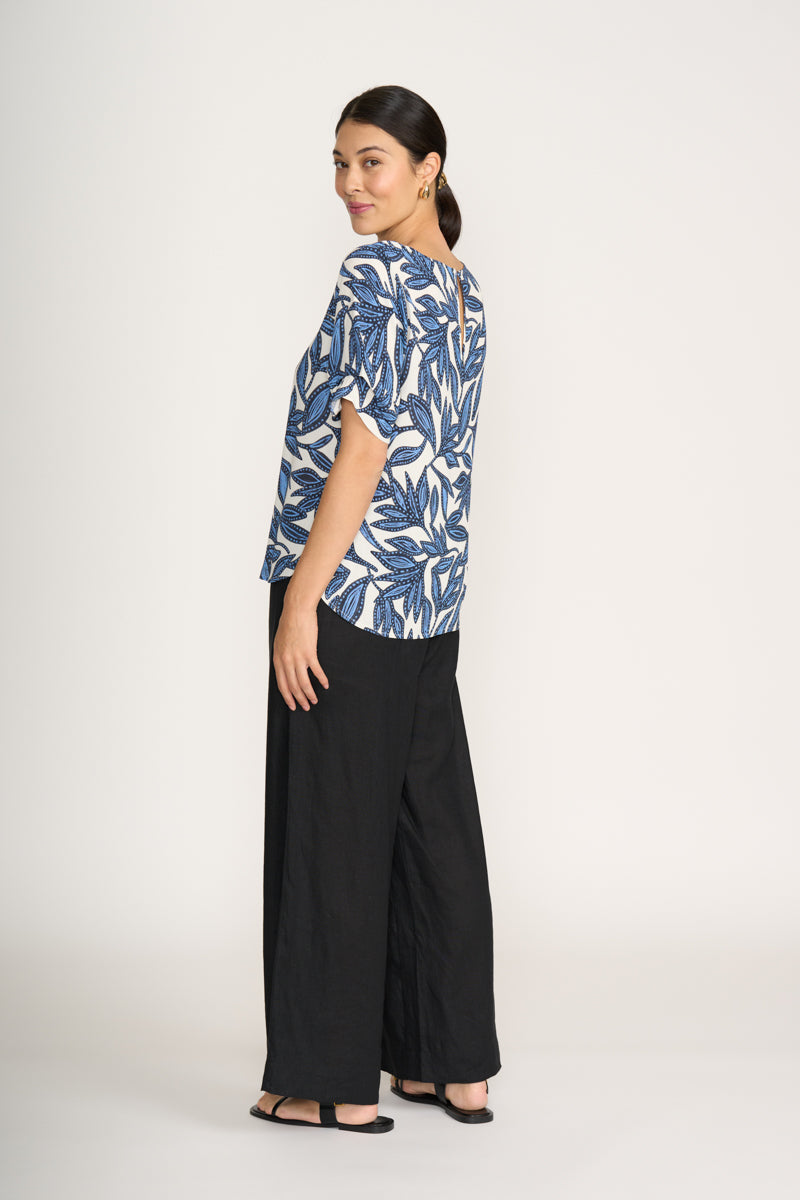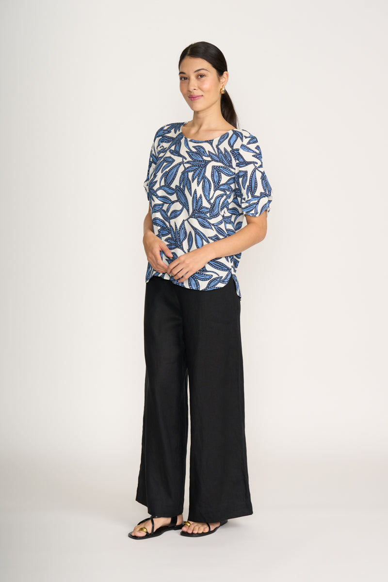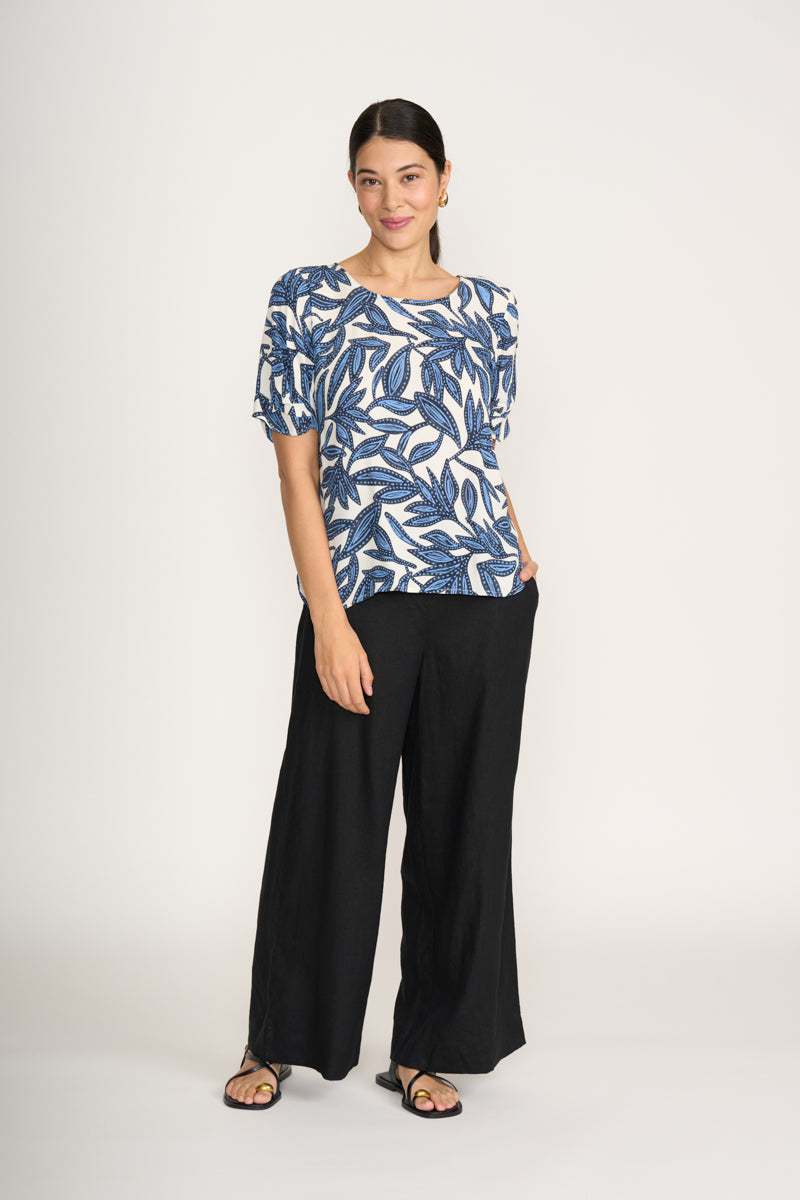 Round neck top with tucked sleeves