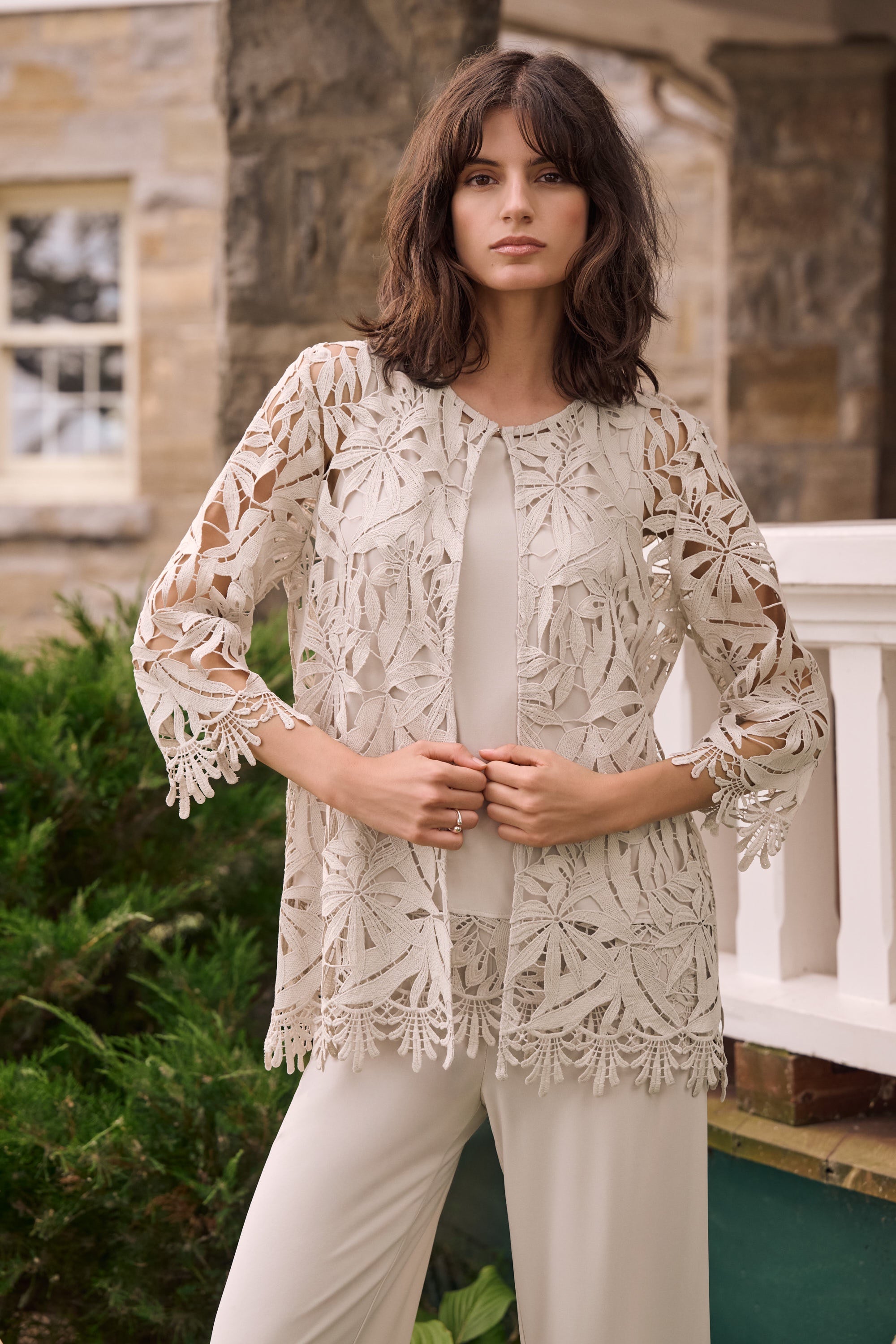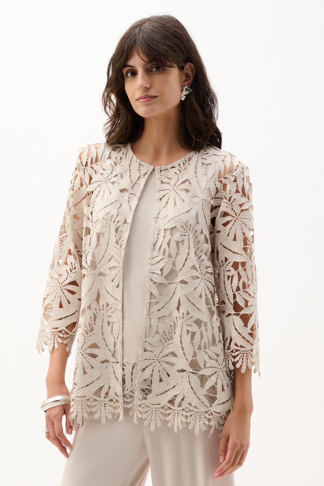 Joseph Ribkoff Guipure Lace Twinset in Moonstone 262096-262094