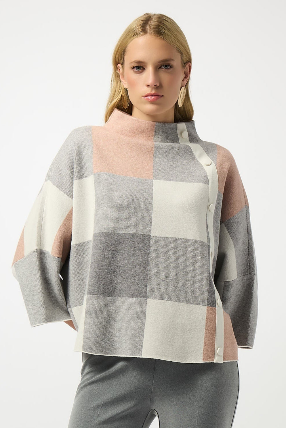 Joseph Ribkoff Plaid Knit in Vanilla Rose Combo 243948