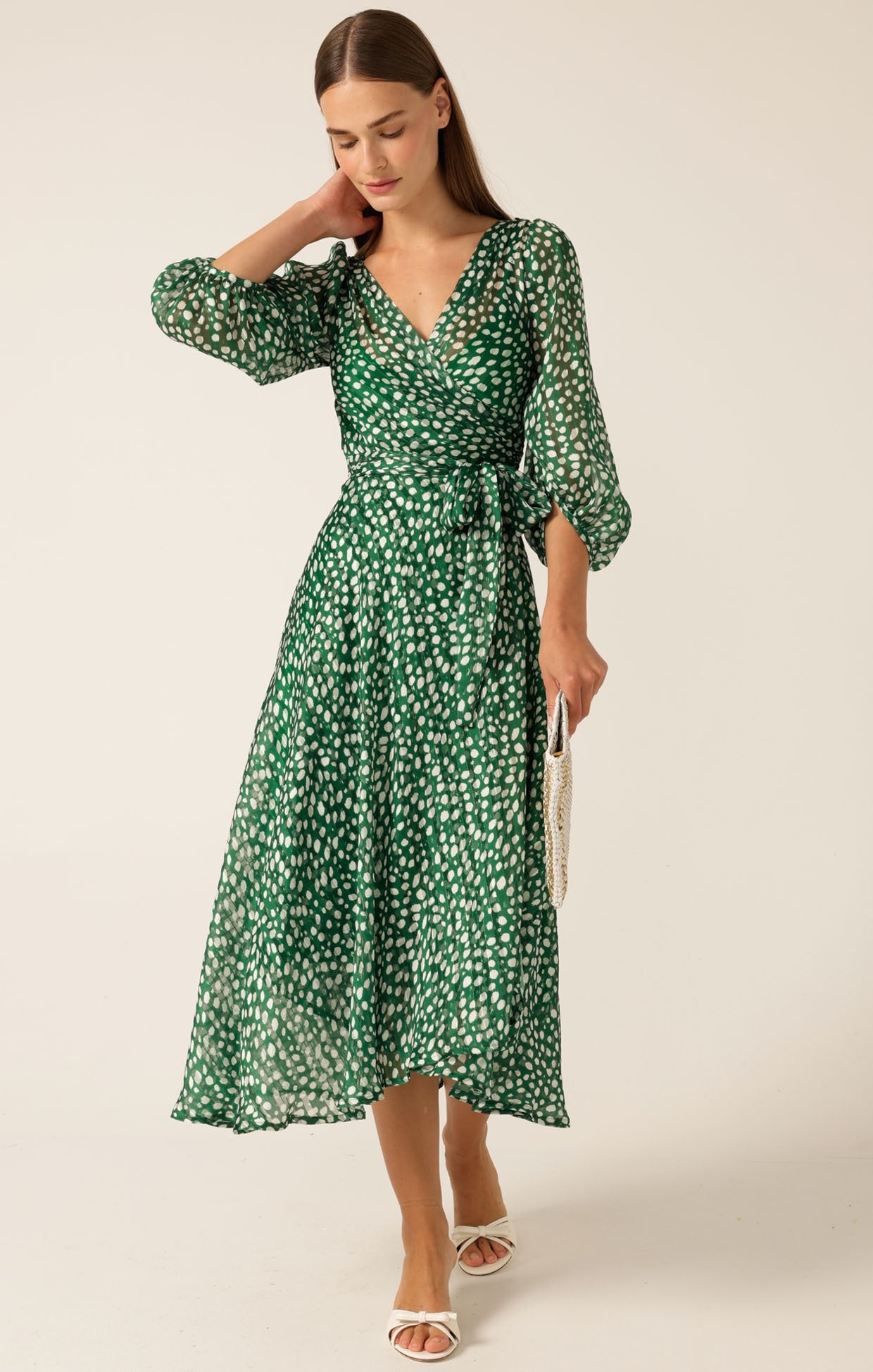 Sacha Drake Cloudland Wrap Dress in Green White Spot Lurex