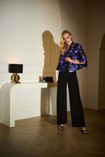 Bring a touch of artistic flair to your wardrobe with this stunning jacket, featuring a vibrant abstract shadow print and a striking statement lapel collar. The swing silhouette offers effortless style and movement, while three-quarter sleeves with slit details at the cuffs add a touch of flair. A bold front button closure serves as a distinctive finishing touch. Perfect for your next event, this jacket guarantees a winning look that’s as eye-catching as it is chic. Part of the Signature Collection.